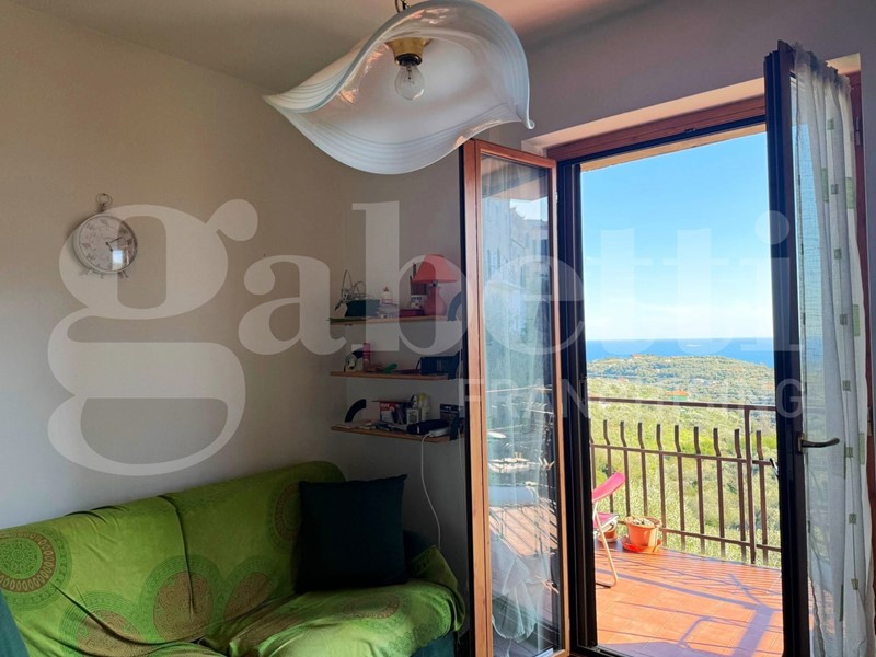 L'appartamento immerso nel verde e tra gli ulivi gode di una splendida vista mare, ideale come casa vacanza.