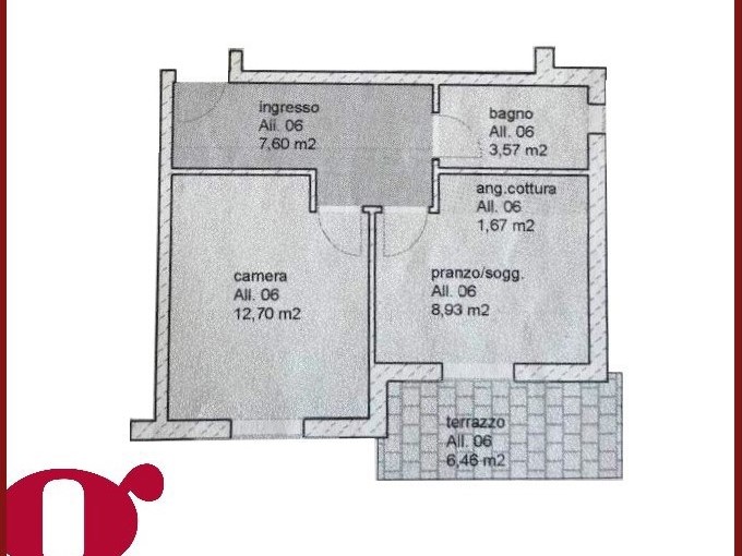 L'appartamento di circa 41 mq è internamente composto da: ingresso su corridoio che collega i vari ambienti della casa, soggiorno con angolo cottura, camera da letto matrimoniale, bagno finestrato e terrazza.