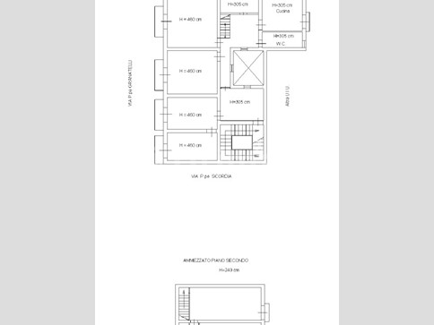 Via Principe di Scordia - Appartamento in palazzo d'epoca mq 190 c.a. posto al 2° piano, composto da ingresso su ampio disimpegno, salone doppio con camino a gas, cucina abitabile con lavanderia-dispensa, wc, wcd, 2 camere da letto.