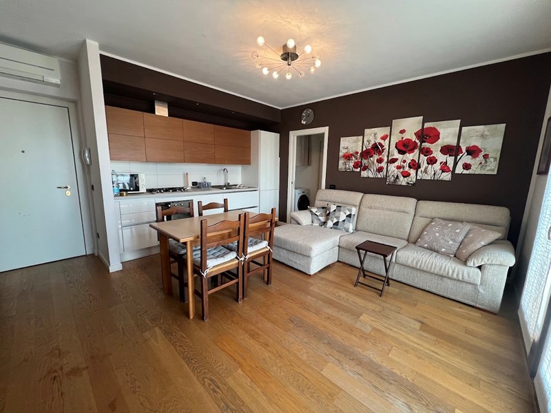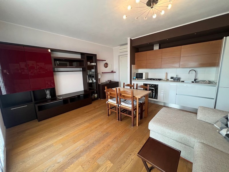 L'ingresso si apre direttamente sul soggiorno con angolo cottura, uno spazio accogliente e luminoso, dal quale si accede a un ampio terrazzo, perfetto per pranzi e cene all'esterno. La zona notte è composta da una camera da letto molto spaziosa e da un bagno.