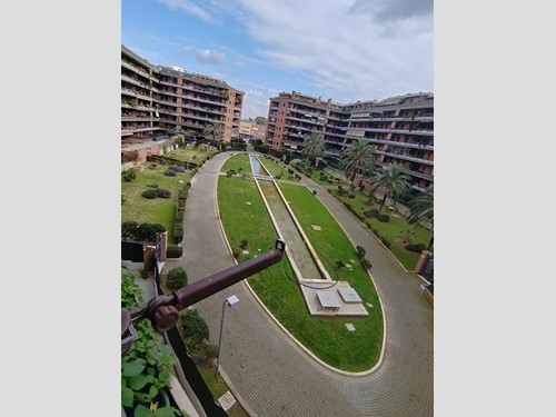 Fiumicino Parco Leonardo, complesso Le Pleiadi, in palazzina con ascensore, appartamento al 3° piano con affaccio interno verso il giardino condominiale e le fontane, buono stato, composto da ingresso, soggiorno, cucinotto, camera matr., studio (utilizzabile come cameretta), disimpegno, 2 bagni ( entrambi esterni, 1 con finestra, 1 cieco), 2 balconi e box auto mq 15.
