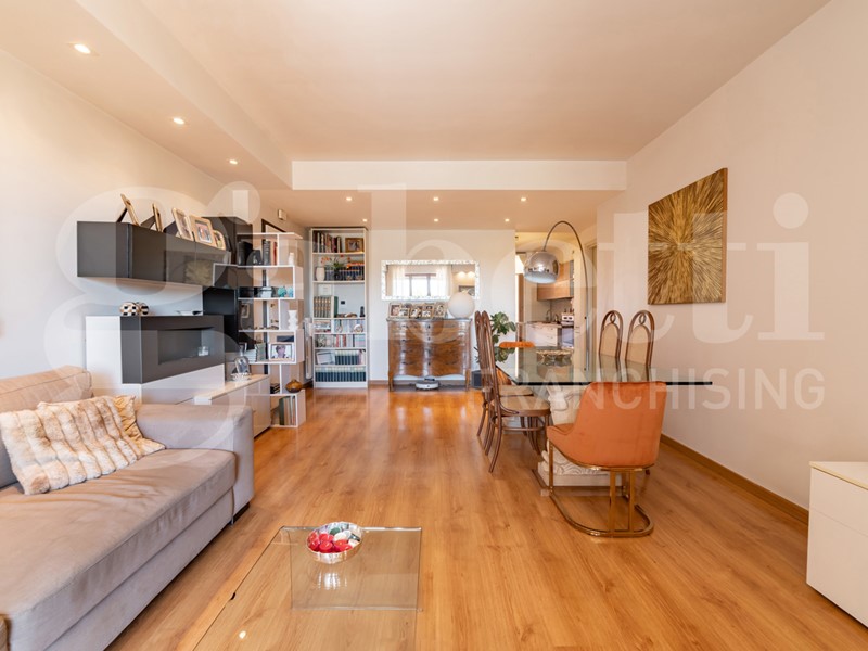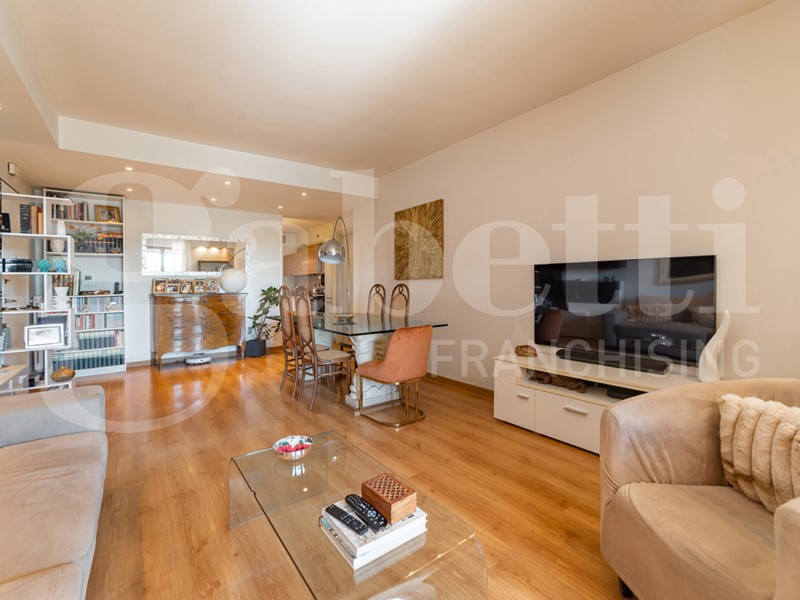 L'appartamento si distingue per l'ottima distribuzione degli spazi interni: un moderno soggiorno si affianca alla cucina abitabile, entrambi valorizzati da un'ottima esposizione che garantisce grande luminosità.