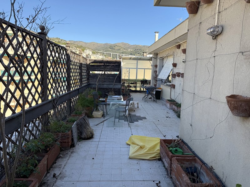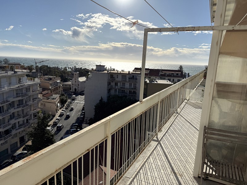 In zona pianeggiante, attico di circa 85 mq. interni da ristrutturare, più ampie terrazze, situato al sesto ed ultimo piano di palazzina anni '60 con ascensore nel cuore del richiestissimo quartiere di San Martino. Questo attico a Sanremo è composto da ingresso, soggiorno, cucina, camera matrimoniale, grande bagno, ampio disimpegno con locale uso studio, lavanderia/wc, grande terrazza sul lato Ovest e balconata sul lato Est. Da entrambi i terrazzi c'è vista mare. Facilmente trasformabile in trilocale. Riscaldamento autonomo. Ottimo per investimento.