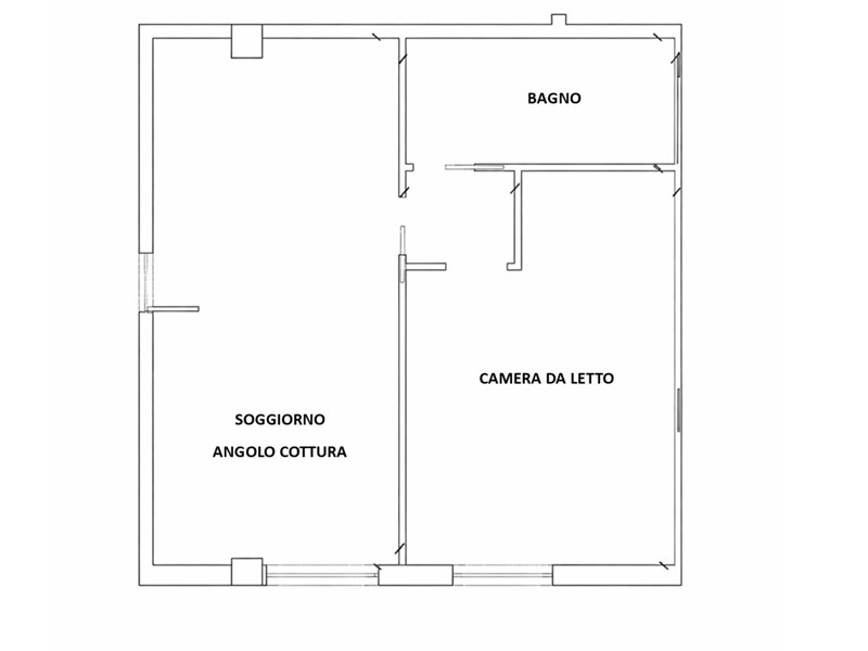 L'unità abitativa è composta da ampio soggiorno con angolo cottura, camera da letto, disimpegno e bagno.