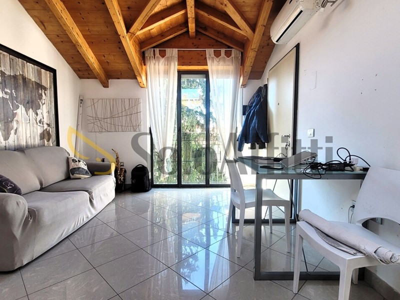 A pochi passi dal centro e comodo per il raggiungimento degli esercizi commerciali, proponiamo in affitto bilocale elegantemente arredato L'alloggio sito al secondo piano (sza ascensore) di una piccola corte, apre le sue porte sull'elegante soggiorno arredato con mobilio moderno, illuminato da porta finestra, rifinito con romantiche travi a vista e velux; La cucina a vista (con lavastoviglie) affaccia sul soggiorno. La camera matrimoniale con ampio armadio, il ripostiglio e il bagno con sanitari sospesi, doppio box doccia e lavatrice compongono la zona notte. Aria condizionata in zona giorno, predisposizione per l'antifurto e i moderni arredi caratterizzano l'alloggio. Nessuna spesa condominiale mensile. Disponibile da metà maggio.