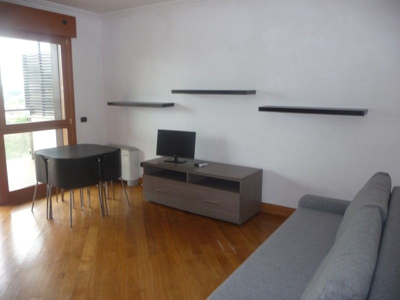 L'appartamento è arredato di angolo cottura, mobile tv, tavolo con sedie, armadio e lavatrice.