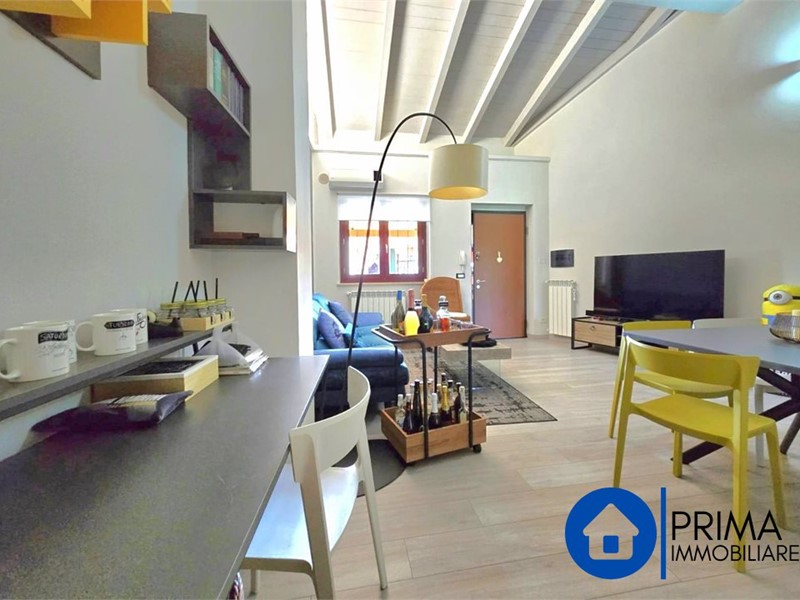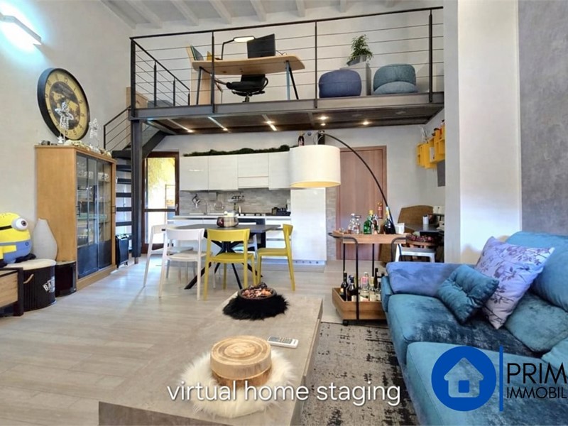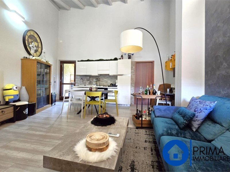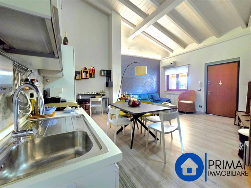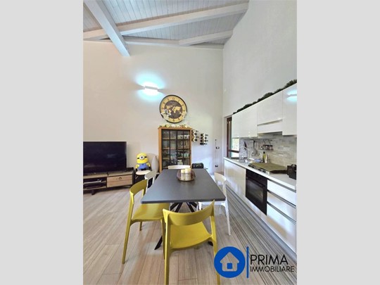 Nella zona di Toano, area della città di recete urbanizzazione e costellata di complessi abitativi moderni e da rigogliosi spazi verdi, proponiamo appartamento dal gusto contemporaneo in complesso edificato nel 2010.\nL'appartamento si trova al primo piano con accesso da una rampa di scale esterne verso un balconcino con cancello. Dal portoncino blindato entriamo nella splendida zona giorno open space composta da un angolo living e una zona pranzo con angolo cottura a vista, bellissimo l'alto soffitto con travi in legno a vista che consente di creare un soppalco per una zona hobby o uno studio.\nImpeccabile anche il balcone verandato dove è stata ricavata una funzionale lavanderia attrezzata di pratiche armadiature.\nLa zona notte rimane separata da un disimpegno con porta a scomparsa, qui troviamo due camere da letto, una matrimoniale ed una cameretta, entrambe con affaccio sul verde e un bagno con finestra e box doccia.\nL'appartamento è in ottime condizioni, pari al nuovo! Nella zona giorno troviamo un'illuminazione a led studiata per valorizzarne il soffitto in travi in legno, è presente lo split per l'aria condizionata, a terra è stato posato un moderno pavimento grigio effetto legno e nelle camere invece c'è un caldo parquet in legno scuro. \nPossibilità di acquistare l'immobile interamente mobiliato.\nCompleta la proprietà il garage doppio di 34mq.\nQuesto appartamento è pronto per essere abitato, comodo, moderno e ricco di stile, è perfetto per coppie o coppie con bambino che cercano una soluzione in cui spostarsi velocemente. Contattaci e fissa una visita la tua casa dei sogni è qui!\n - Maggiori Dettagli: Porta blindata, Predisposizione aria condizionata