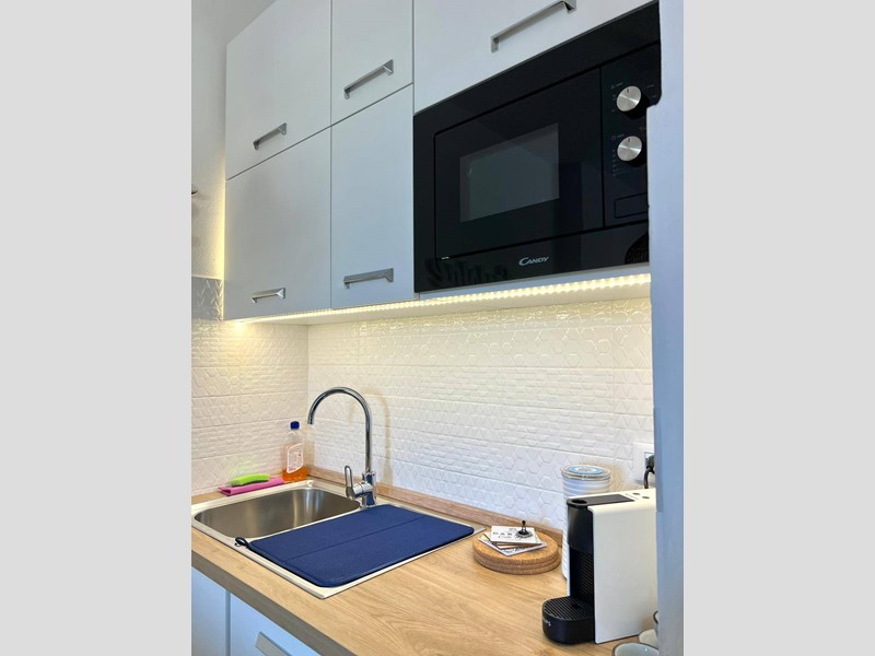 Marina di Pisa: Apartment for summer rental in August. Excellent, completely new solution, ideal for two/three people, just steps from the Marina di Pisa seafront. This wonderful property is located on Via Santo Stefano, just steps from Piazza Sardegna and all basic amenities. A Coop, bar, pastry shop, and butcher's shop are just steps away. A coin-operated laundromat is also nearby. The apartment comprises a large entrance area into the living room with kitchenette, double bedroom, and bathroom/WC. Access is semi-exclusive from a small external entrance balcony. Air conditioning is available!!! Available for the entire month of August. Weekly rentals are also possible. For information and viewings, call Andrea 3391878399.