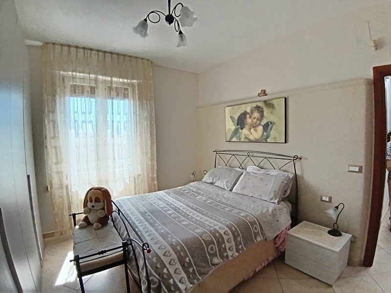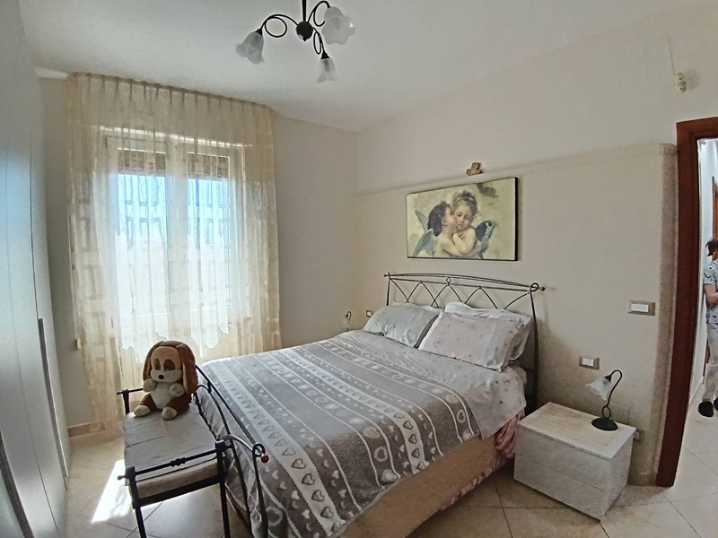 L'immobile si sviluppa al primo piano ed è così composto: ingresso, ampia sala, cucina abitabile con dispensa, quattro camere da letto, un bagno con possibilità di realizzare un secondo bagno, due balconi e garage.