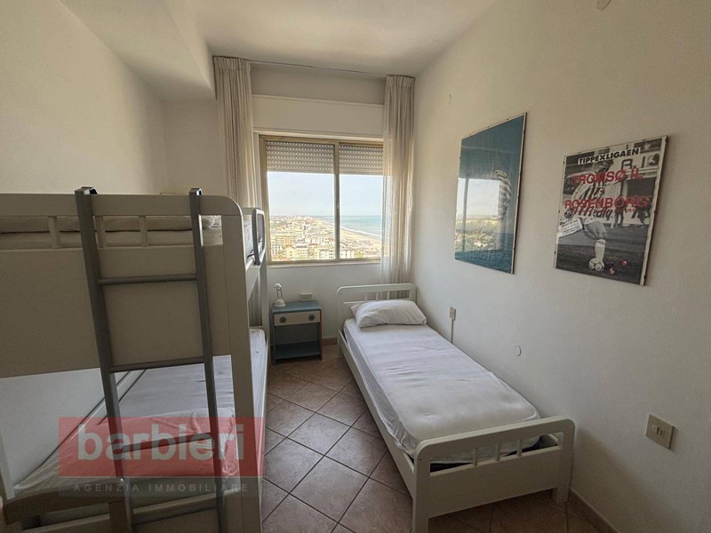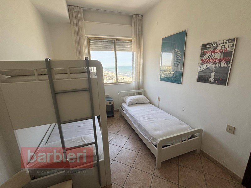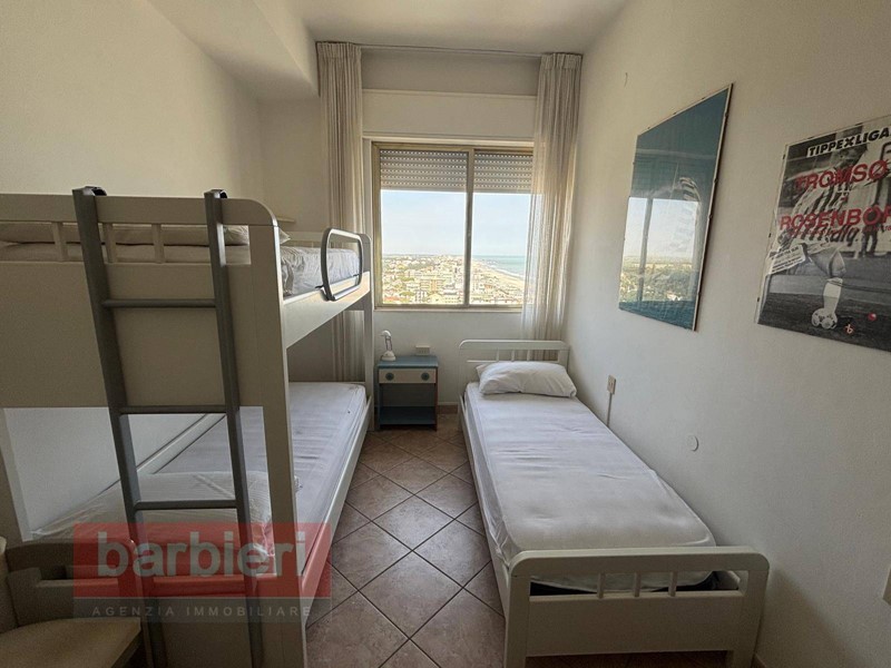 Affittiamo a Milano Marittima, a pochissimi passi dal mare, appartamento al 17° piano con ascensore e vista mare composto da: soggiorno con angolo cottura, una camera matrimoniale e singolo, una camera con letto a castello e singolo e bagno con box doccia.