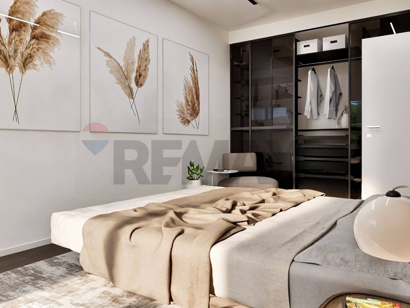 La zona notte è composta da unampia camera matrimoniale con cabina armadio, pensata per garantire comodità e privacy.