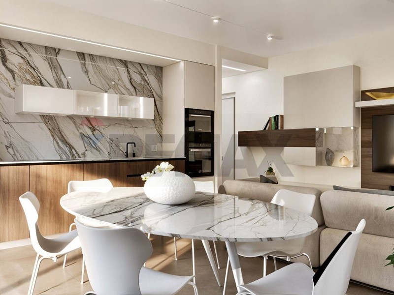 Lingresso si apre su una zona living luminosa con cucina a vista, pensata per ottimizzare gli spazi e creare un ambiente funzionale e accogliente.