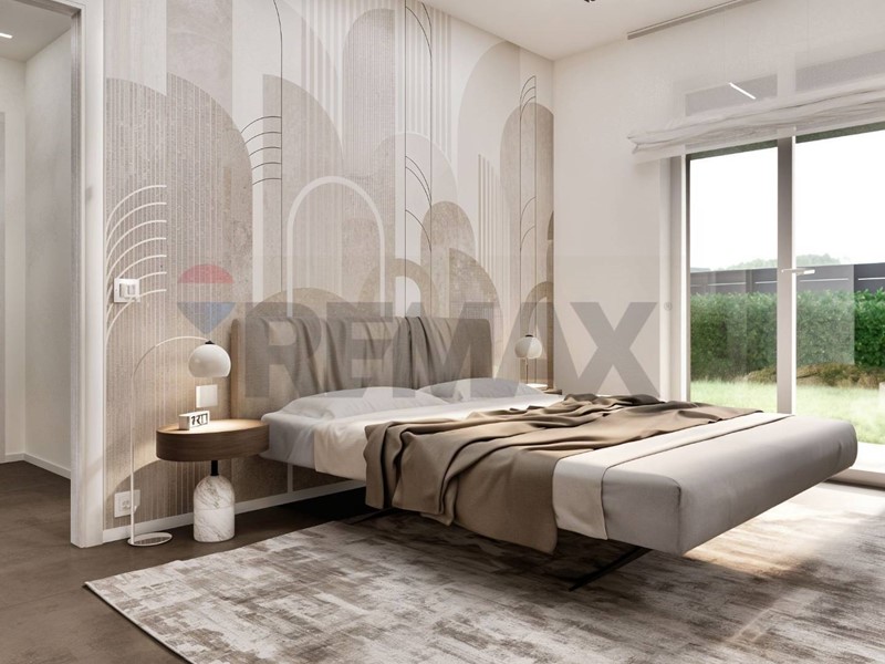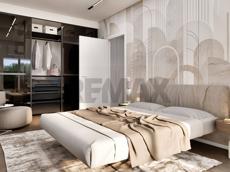 La zona notte è composta da unampia camera matrimoniale con cabina armadio, pensata per garantire comodità e privacy.