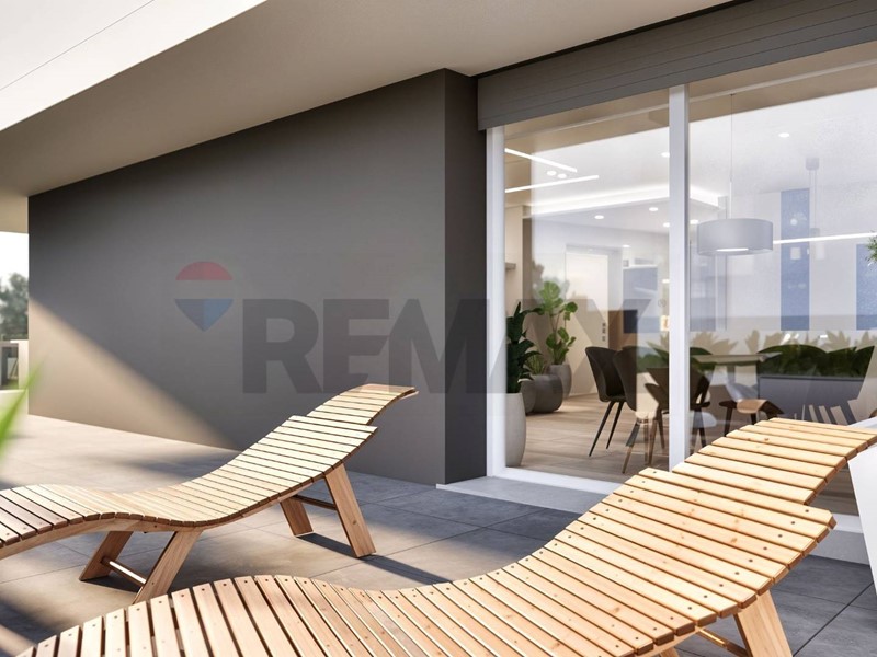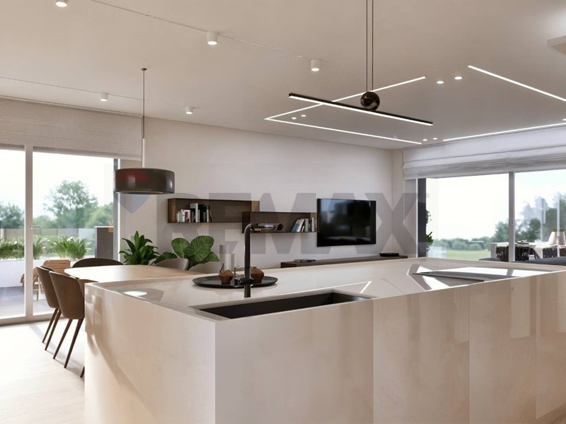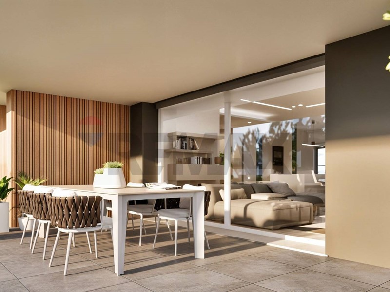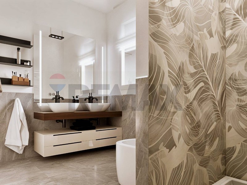La zona giorno è composta da un ampio soggiorno open space con cucina a vista, con accesso diretto a un grande terrazzo vivibile.