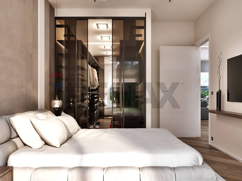 Camera matrimoniale con cabina armadio, bagno en suite e accesso diretto al giardino