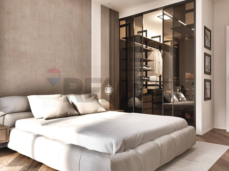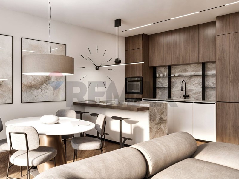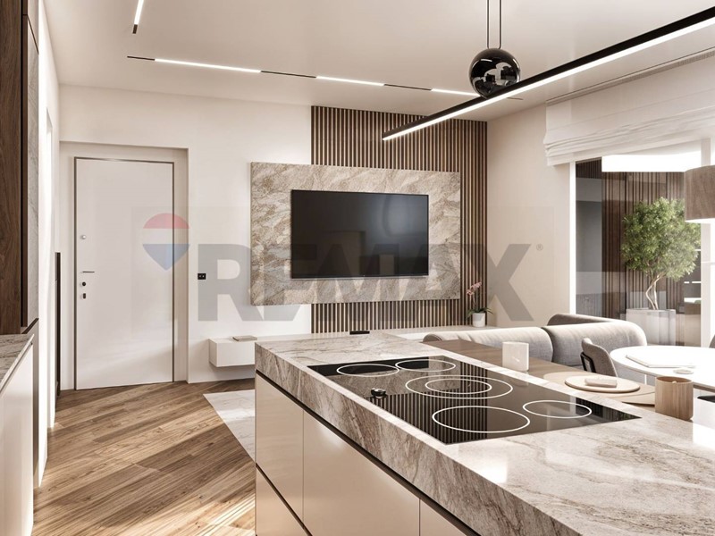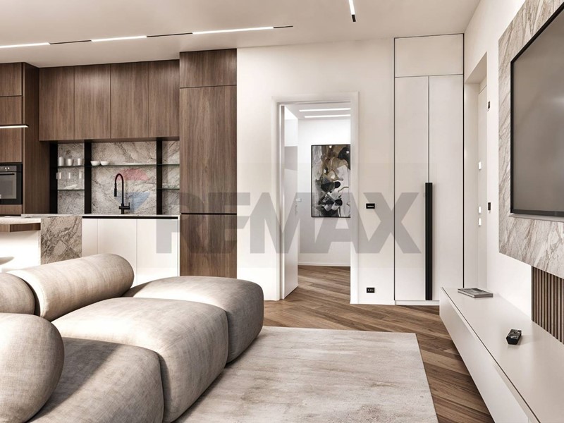 Lampia zona giorno open space con cucina a vista si apre direttamente su un terrazzo vivibile, perfetto per pranzi allaperto e momenti di relax. La camera matrimoniale è servita da una loggia ad uso esclusivo, ideale per godere di uno spazio privato.