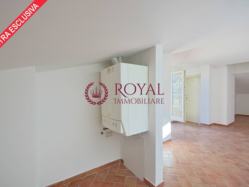 In ottimo contesto condominiale in villa d'epoca libera su 4 lati appartamento al secondo e ultimo piano con ascensore disposto su due livelli con ingresso - soggiorno ampio, cucina abitabile, camera matrimoniale, camera media, bagno con finestra, comoda scala per accedere al piano superiore sottotetto calpestabile e non abitabile spazioso, con accesso alla terrazza a tasca vivibile, ripostiglio con predisposizione del bagno. Torretta panoramica con terrazza . Ottime condizioni. Termo autonomo. Due posti auto di proprietà. Infissi in legno con doppi vetri. Ottima esposizione solare. Subito disponibile. Nelle spese condominiali è compresa l'acqua.