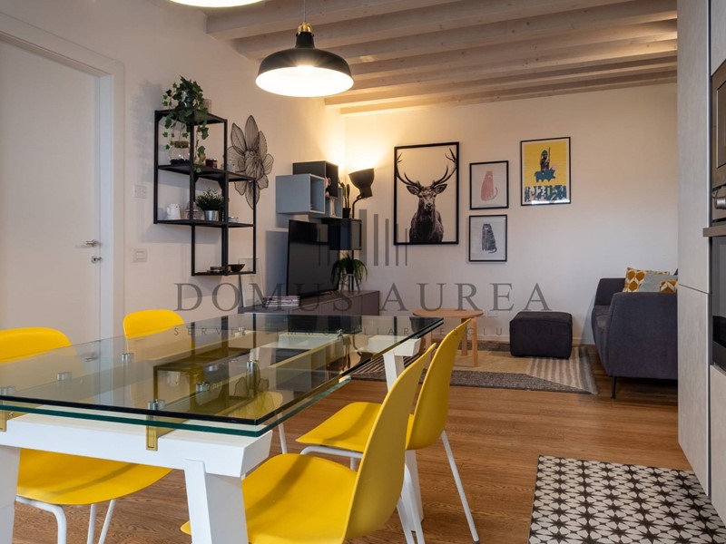 Limmobile si apre su unaccogliente zona living in open space, progettata per offrire un ambiente moderno. Dalla cucina si accede direttamente a una splendida terrazza coperta, perfetta per pranzi e cene allaperto, che si affaccia su un giardino esclusivo: uno spazio ideale da vivere come zona solarium o per organizzare piacevoli momenti conviviali con barbecue.