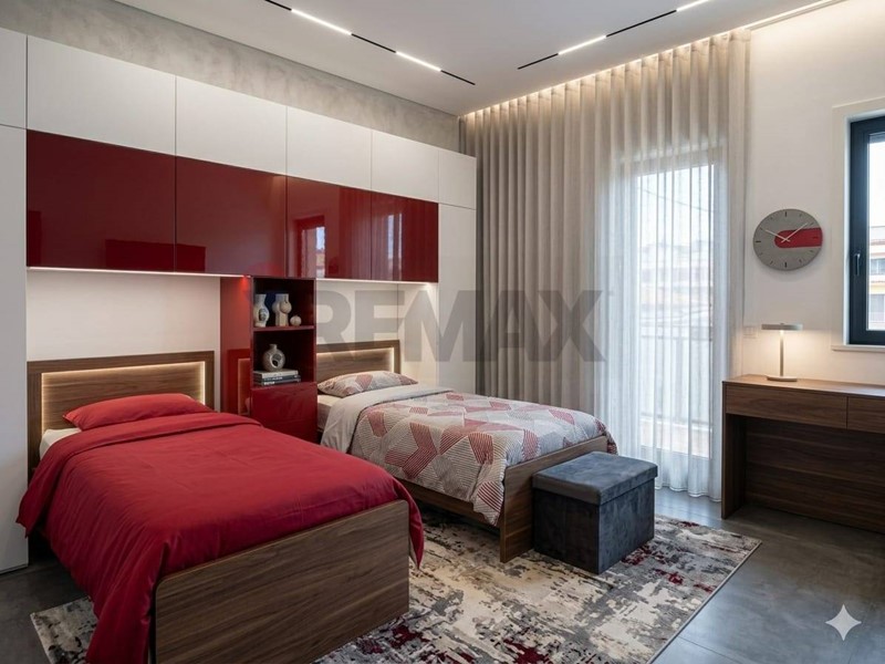 L'appartamento è composto da due grandi camere da letto, salone, camera studio, cuicna, bagno e lavanderia.