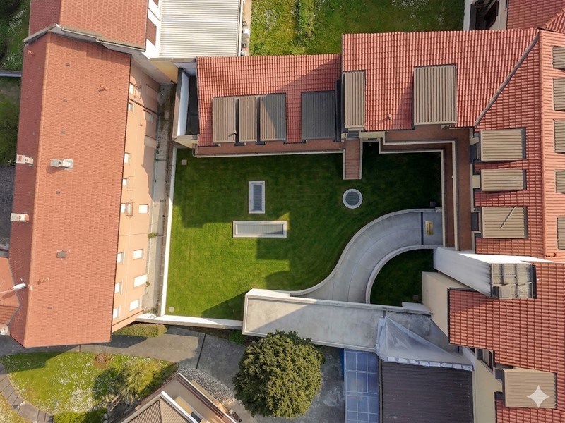 L' edificio si sviluppa attorno ad grazioso spazio verde condominiale caratterizzato dalla presenza di una magnolia.