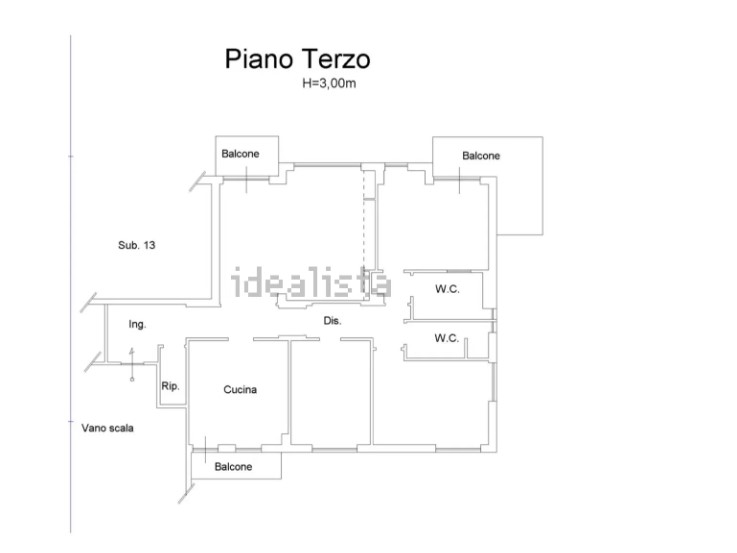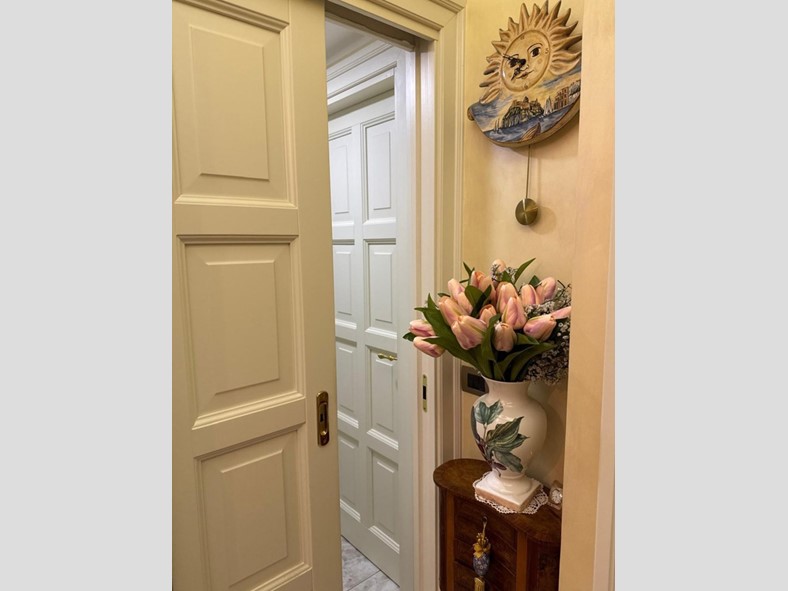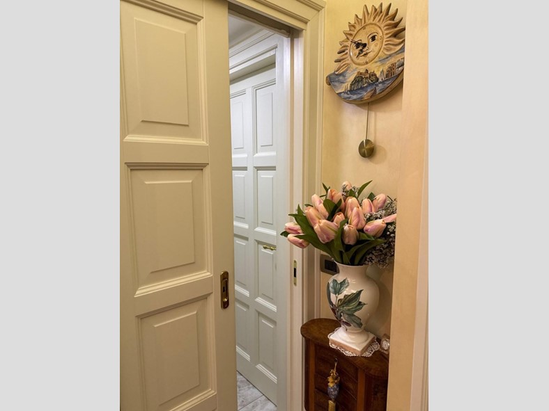 L'appartamento, posto al terzo piano, con tripla esposizione e tre balconi, è così composto: ingresso, cucina abitabile, salone, 3 camere da letto di cui 2 matrimoniali e una singola (o studio), 2 bagni con vasca idromassaggio e doccia con cromoterapia, ripostiglio. Due corridoi garantiscono indipendenza della zona notte con possibilità di utilizzo del bagno en suite, chiudendo porta a scrigno dedicata.