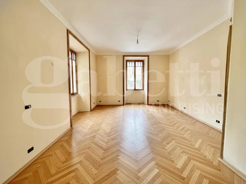 La distribuzione degli spazi è frutto di un progetto razionale, studiato per assicurare eccellente vivibilità e raffinata eleganza. La notevole altezza dei soffitti conferisce il respiro arioso tipico degli appartamenti d'epoca. Dall'ampio ingresso si accede ai vari ambienti. Il cuore dell'abitazione è un salone doppio di rappresentanza, con un rilassante affaccio angolare nel verde che garantisce silenziosità e totale riservatezza. Adiacente si sviluppa un'ampia cucina abitabile. La zona notte si compone di due spaziose camere. Entrambe beneficiano di bagni dedicati in materiali di primissima scelta; una delle stanze vanta l'accesso diretto al balcone. L'abitazione dispone di un terzo bagno completo per la zona di rappresentanza e gli ospiti. Grazie ai grandi volumi e alla versatile pianta, l'immobile offre l'opportunità di ricavare agevolmente un'ulteriore camera. Valorizza la proprietà una comoda cantina.
