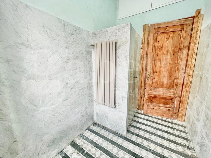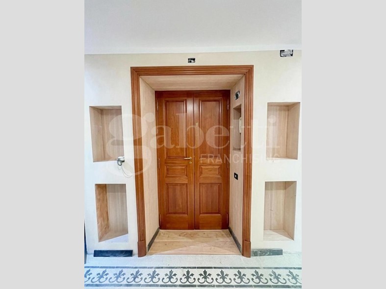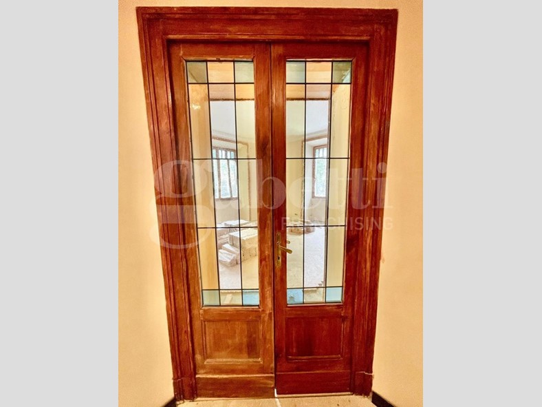 L'ingresso presenta pavimentazione in graniglia con decorazioni perimetrali a giglio nero realizzate artigianalmente fedeli al disegno originale. In salone, camere e cucina è posato parquet in massello di faggio dello spessore di 2,2 cm con finitura ad olio. I bagni, con pavimentazione in graniglia originale anni '20 sapientemente recuperata, vantano rivestimenti e piatti doccia su misura in marmo di Carrara, racchiusi da eleganti box in cristallo. Il rivestimento della cucina è in raffinato travertino. Un accurato restauro conservativo ha interessato gli infissi in massello di larice: porte interne decorate con vetrate in vetro soffiato e finestre con vetri antisfondamento Visarm con decoro fedele allo stile originario. Impianti elettrico, idrico-sanitario e gas realizzati ex novo. L'impianto idraulico è dotato di centralina di distribuzione ai singoli punti. Il riscaldamento centralizzato è corredato da radiatori di design Irsap con valvole individuali, ed è stata realizzata la predisposizione per l'impianto autonomo. L'abitazione è servita da un impianto di condizionamento di nuova realizzazione con quattro split, a servizio di salone, camere e cucina.
