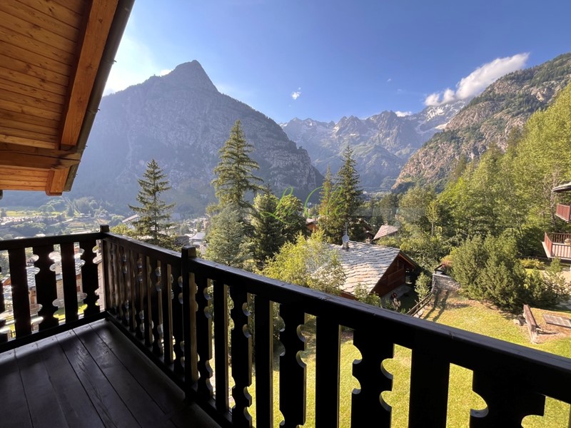 La Clé Immobiliare e servizi propone in affitto attico con splendida vista sulla catena del Monte Bianco e a pochi passi dal centro del paese. L'ingresso in casa è diretto con ascensore privato e si accede al luminoso salotto e zona pranzo, la cucina è separata con vista sul giardino. Dalla zona giorno si accede ad un balcone con splendida vista. Al piano, nella zona notte: c'è la camera padronale con bagno en suite e terrazzo coperto con vista sui tetti di Courmayeur e sul campanile della chiesa. 1 camera singola e 1 camera doppia con un secondo bagno con doccia.