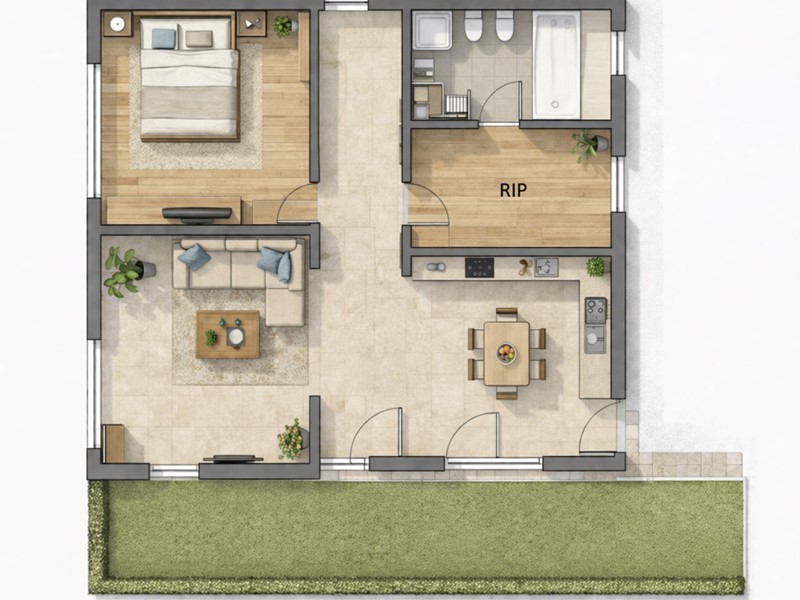 L’appartamento è composto da ingresso su zona living con soggiorno e cucina in open space, camera matrimoniale, bagno, ripostiglio ed un gradevole giardino, ideale per pranzare e cenare all’aperto godendo del clima della riviera ligure.