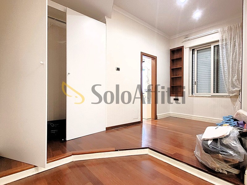 Zona Living: Un ingresso accogliente conduce alla zona giorno, caratterizzata da un elegante parquet e arricchita da una capiente cabina armadio e una parete attrezzata in legno di pregio.