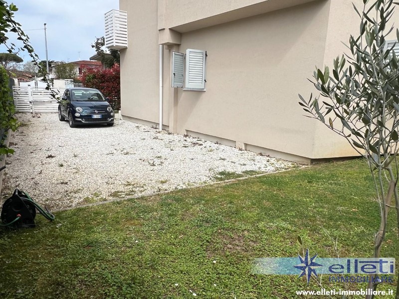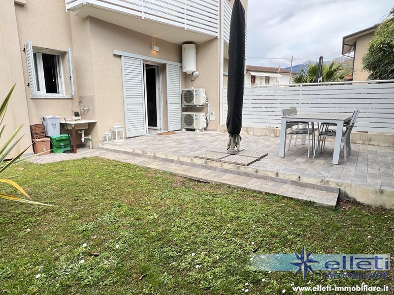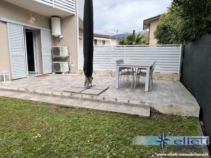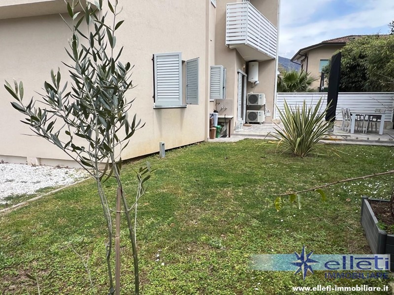 Cinquale, sul Confine con Forte dei Marmi (Vittoria Apuana) e a 450 metri dalle Spiagge, Vendesi Splendido Appartamento al Piano Terra di Recente Costruzione, Libero su 3 Lati e Circondato da un Ampio Giardino Privato. Ingresso su Confortevole Salotto con Camino Elettrico, Cucina Abitabile con Accesso a Comoda Veranda Pranzabile. Zona Notte Composta da 2 Camere Matrimoniali entrambe con Bagno Privato con Doccia e Finestra. Uno dei 2 Bagni ha un Doppio Accesso: da una delle 2 Camere da Letto e dal Soggiorno Tramite Comoda Lavanderia. Parcheggio Interno con Cancello Elettrico. Vetri Tripli. Condizionatori. Allarme. Classe Energetica A3.