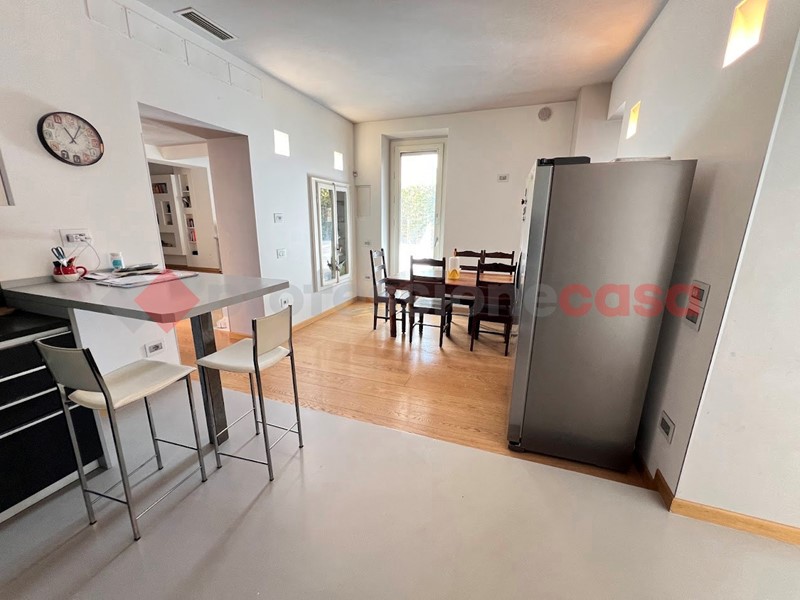 La cucina a vista, moderna e funzionale, si integra perfettamente con la zona giorno, creando un ambiente conviviale e contemporaneo.
