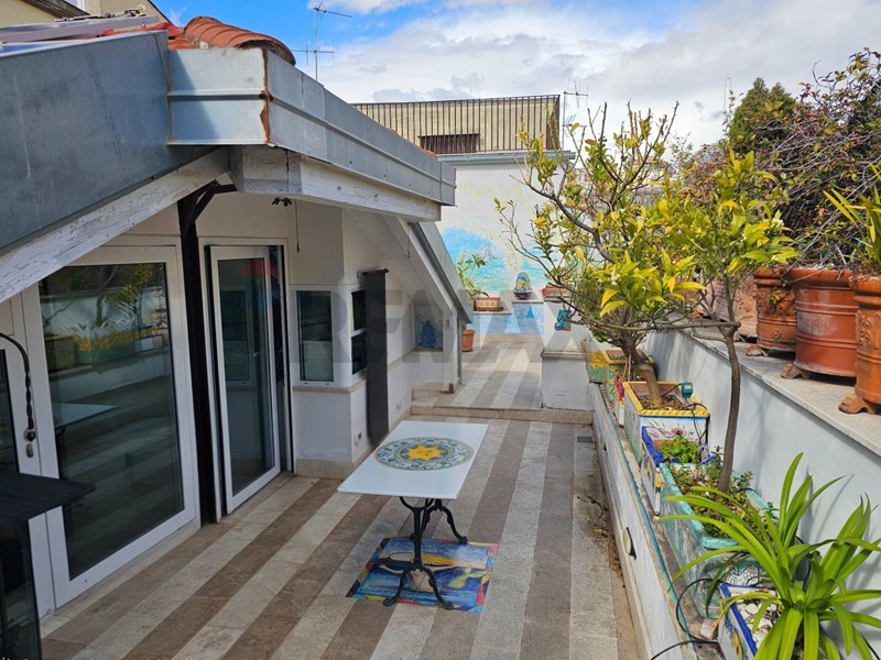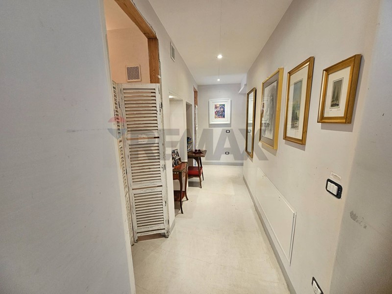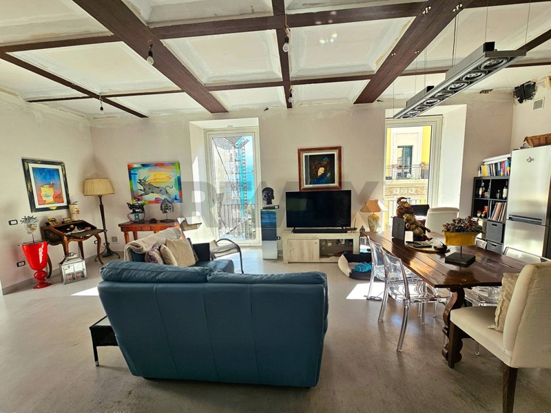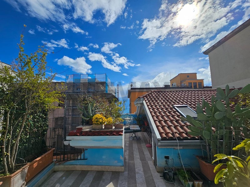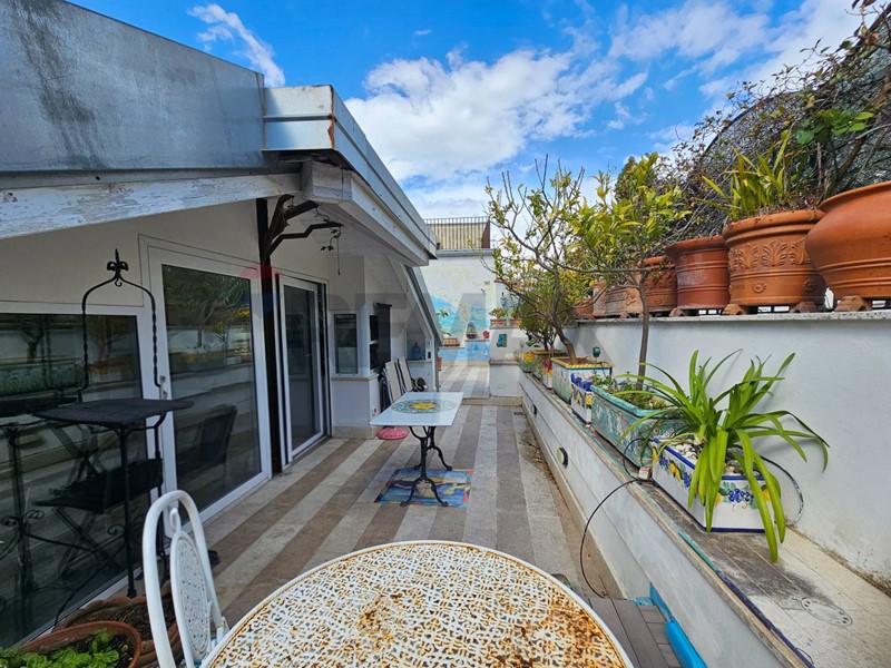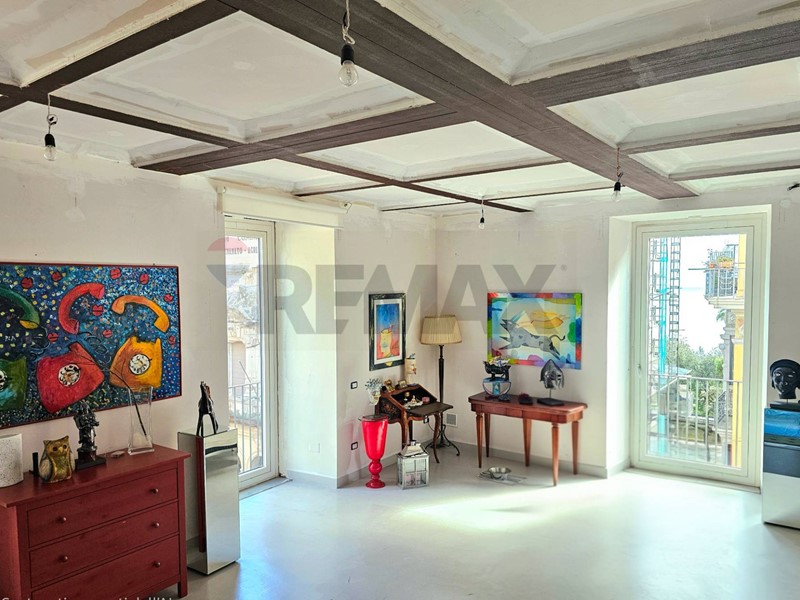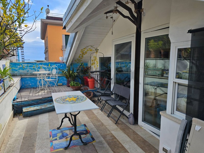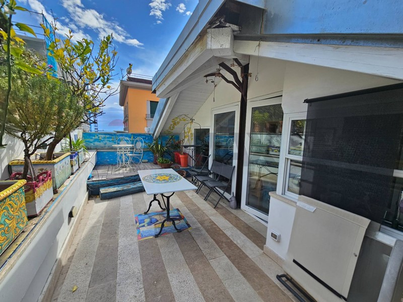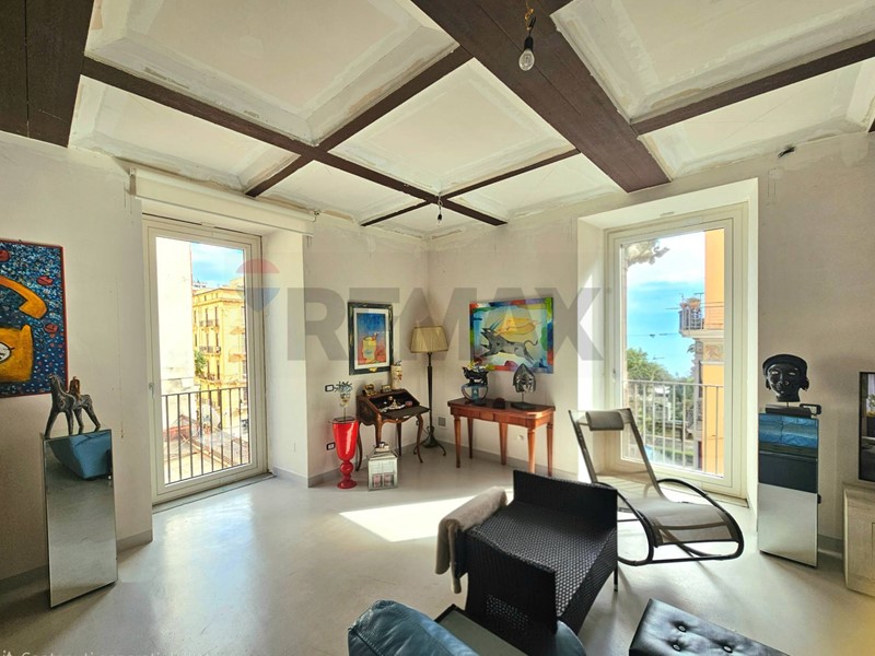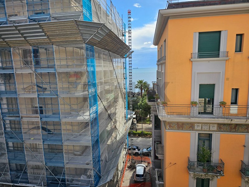 L'ingresso ampio spazioso, ci porta su un monumentale salone quadruplo di 65 mq, un vero "belvedere" privato grazie agli ampi infissi che inondano lambiente di una luminosità "wow" e offrono una vista diretta e suggestiva su Via Roma e sul blu del Mediterraneo. Ampia camera padronale con bagno en-suite, seconda camera, bagno di servizio, sala macchine e terrazzino con deposito.