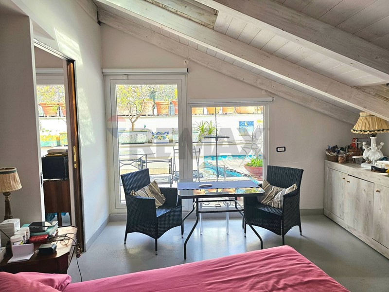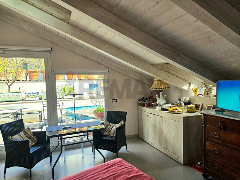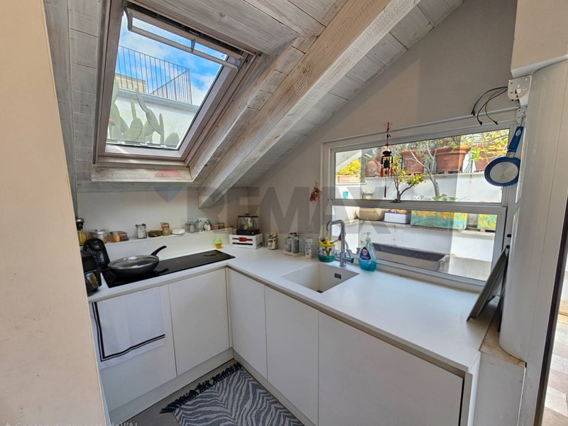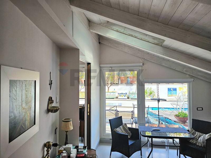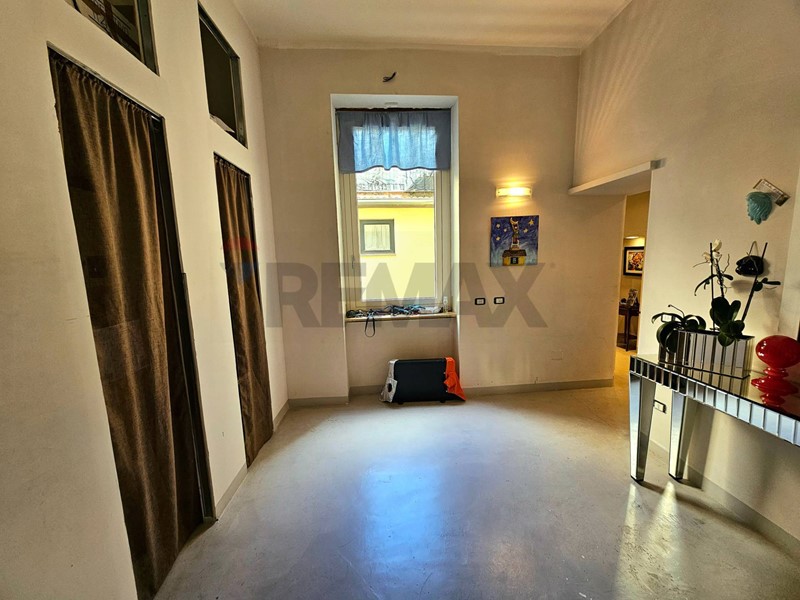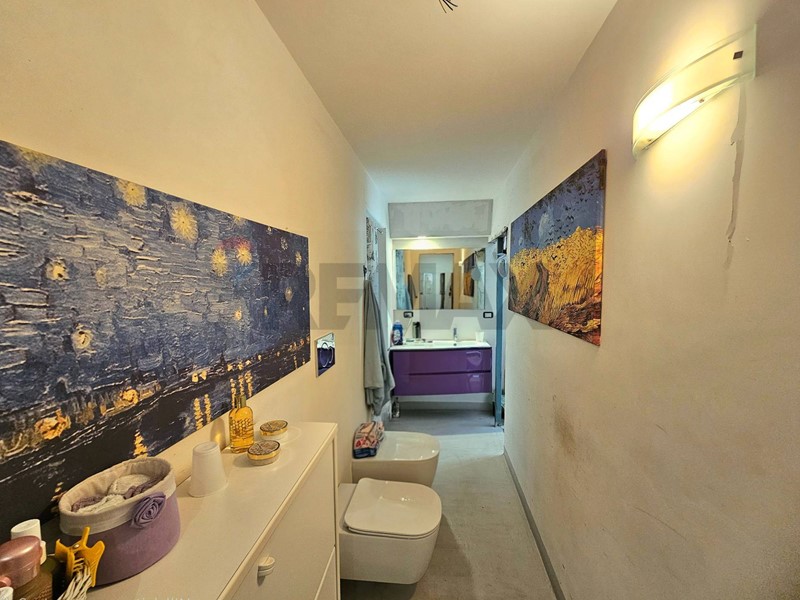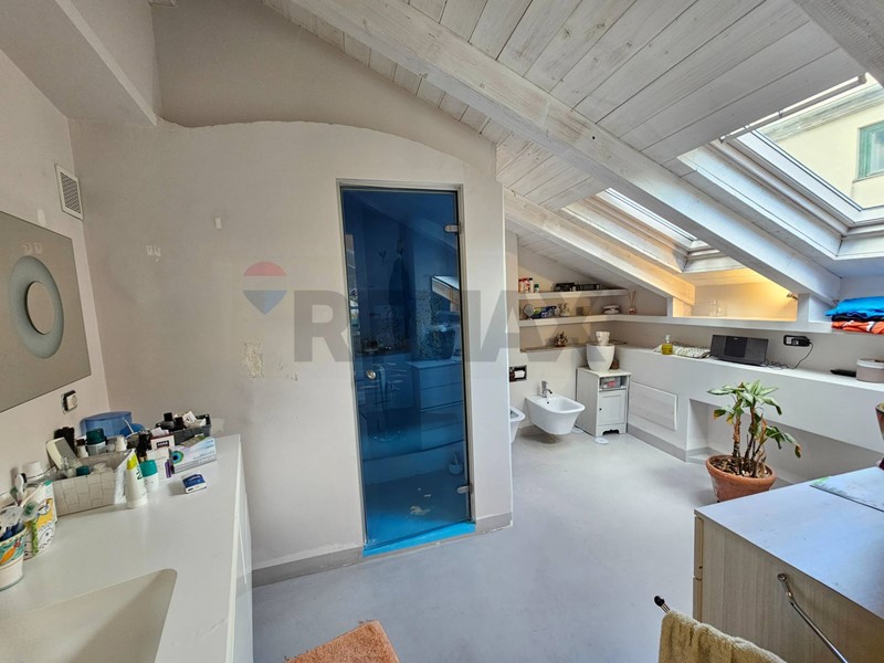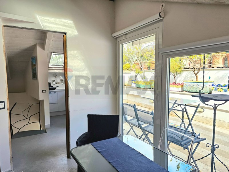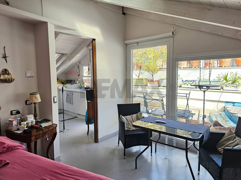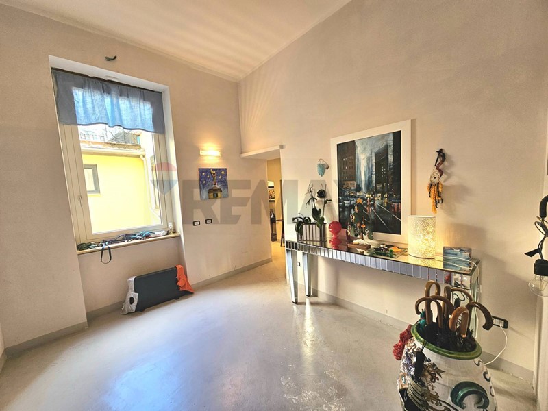L'ingresso ampio spazioso, ci porta su un monumentale salone quadruplo di 65 mq, un vero "belvedere" privato grazie agli ampi infissi che inondano lambiente di una luminosità "wow" e offrono una vista diretta e suggestiva su Via Roma e sul blu del Mediterraneo. Ampia camera padronale con bagno en-suite, seconda camera, bagno di servizio, sala macchine e terrazzino con deposito.