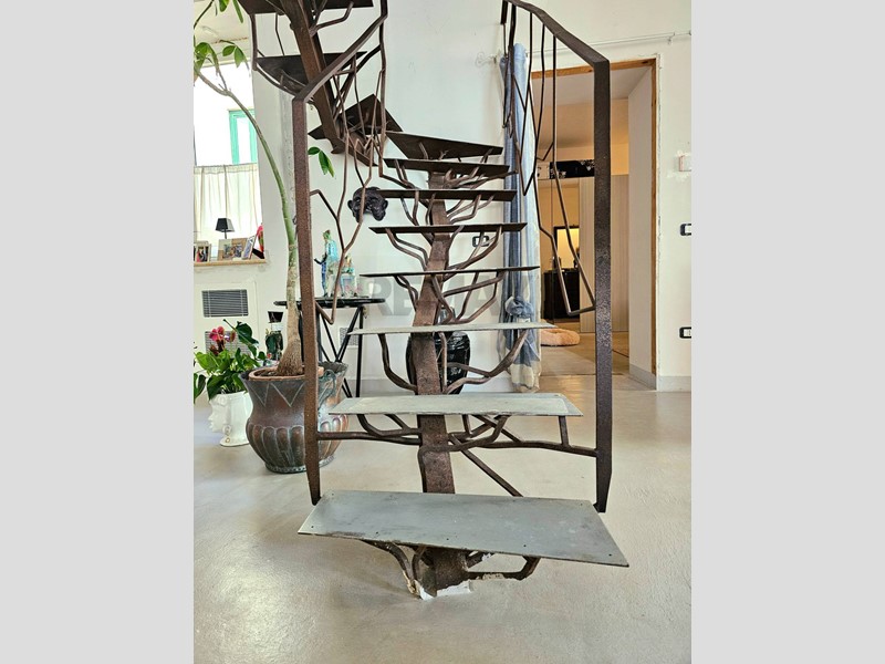 Salendo attraverso una scenografica scala di design in ferro (lalbero), si accede alla zona più intima. Una master suite con cabina armadio e una sala da bagno dotata di doccia emozionale e bagno turco. Il livello si conclude con un angolo cottura dedicato che serve lo splendido terrazzo a livello, il luogo ideale per cene sotto le stelle, tra i tetti e il blu del mare.
