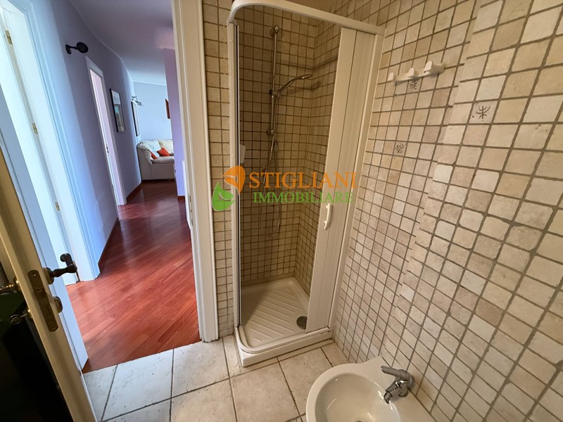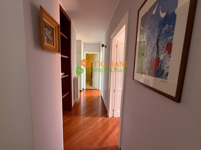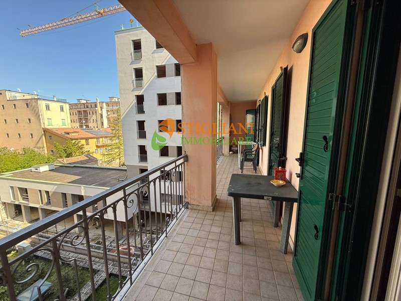 Al centro della città, appartamento arredato di metri quadrati 113 circa, posto al quarto piano e composto da: ingresso, cucinino, soggiorno-pranzo, disimpegno, 3 camere da letto, doppio servizio, uno con vasca idromassaggio e uno con doccia, due balconi e garage. Impianto di riscaldamento autonomo.