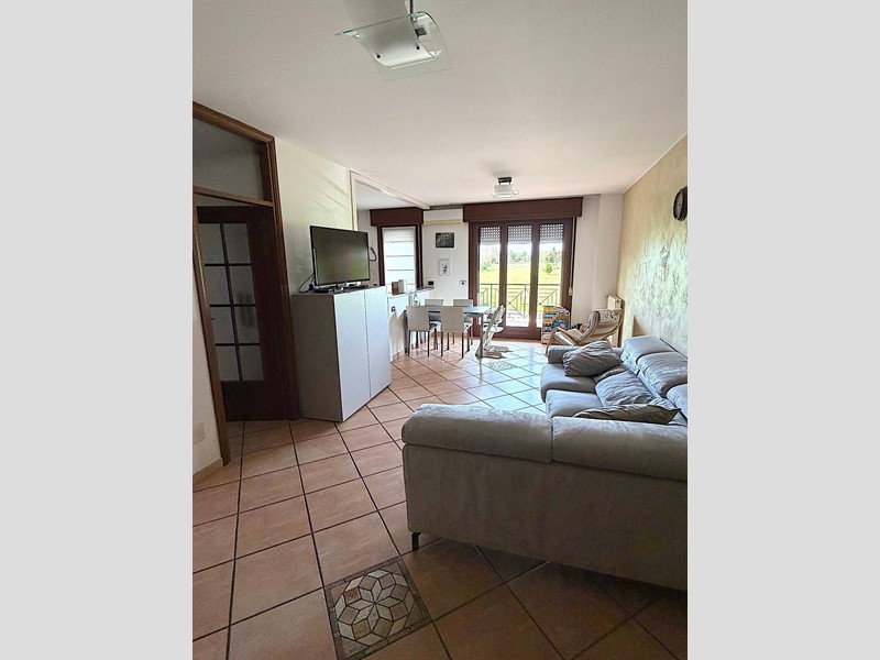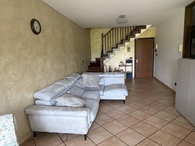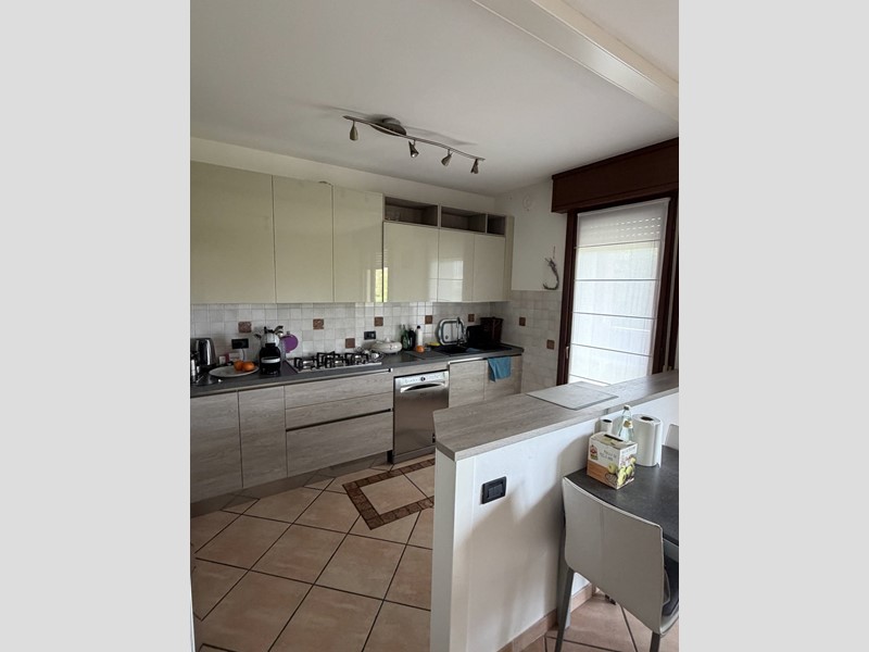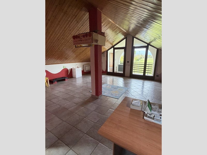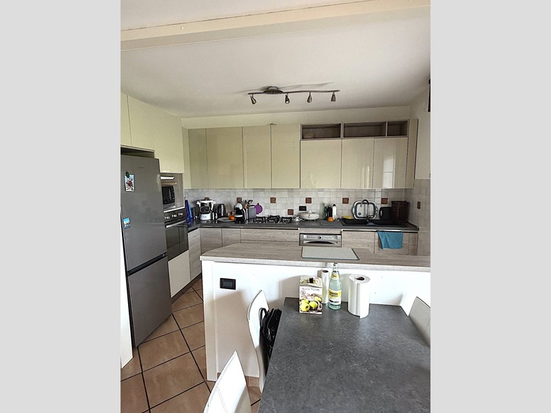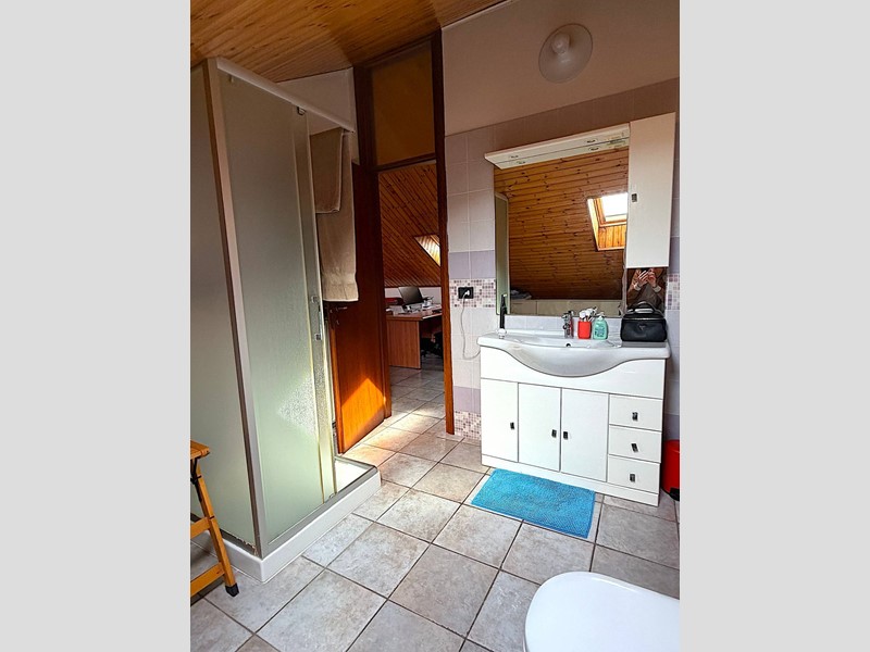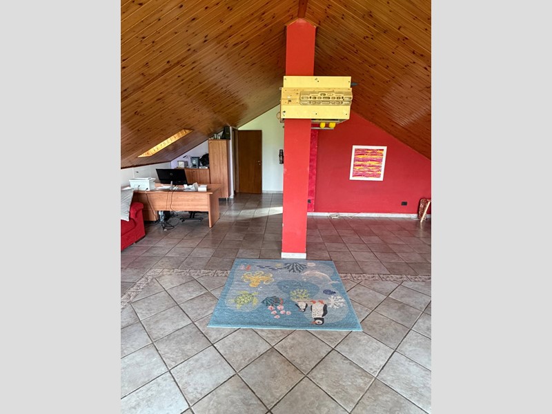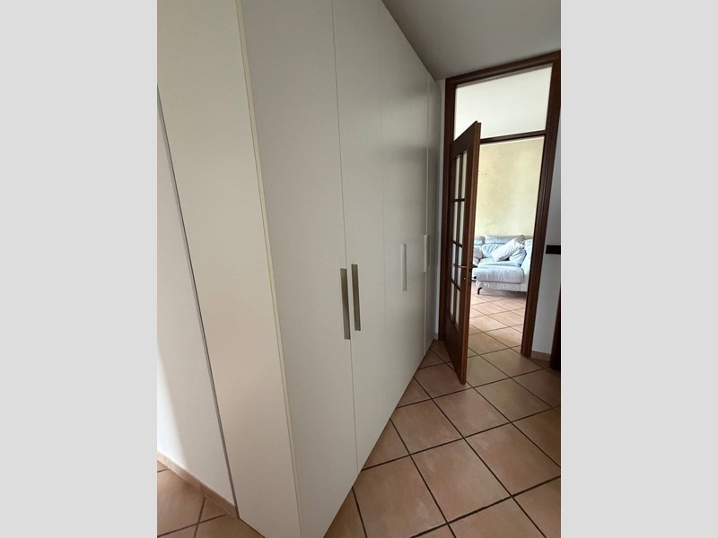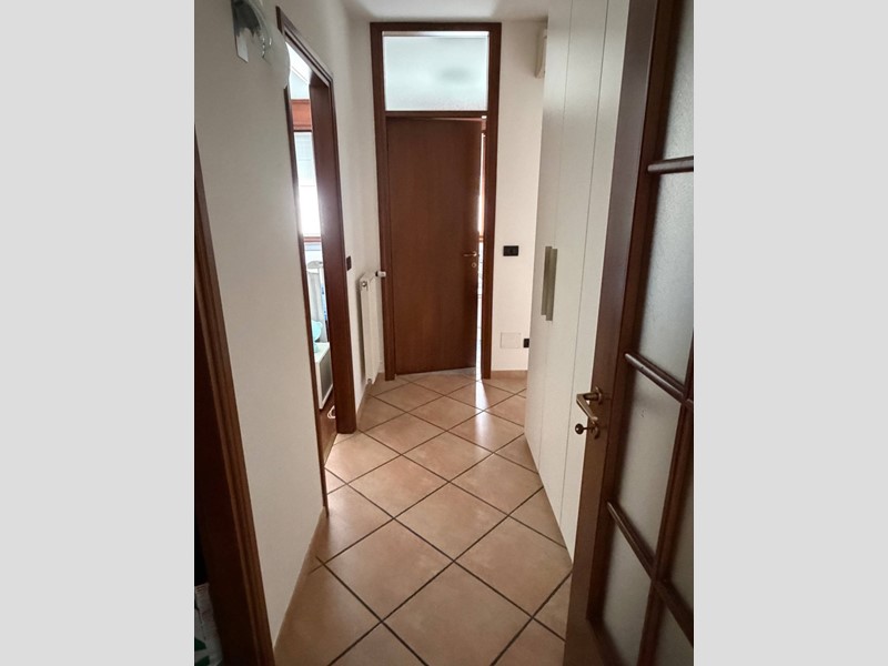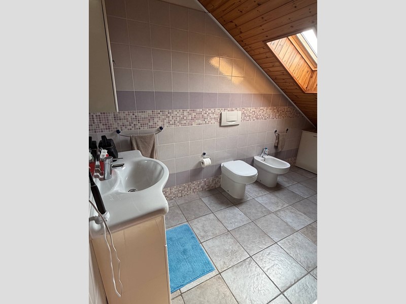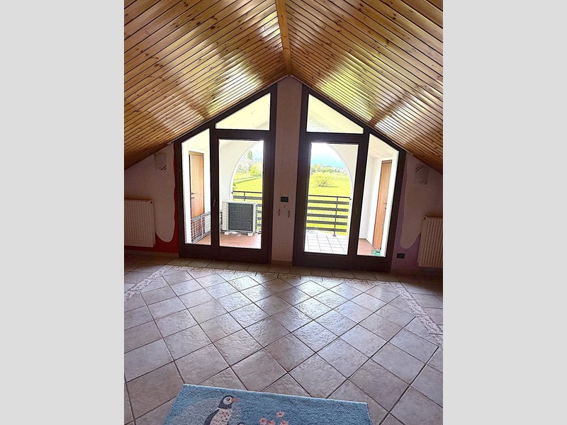 Dalla scala condominiale ampia e luminosa accediamo al piano primo (di mq. 90), dove dalla porta blindata entriamo nel soggiorno di buone dimensioni con una grande vetrata finale dove si trova la terrazza abitabile con vista sulle montagne, sempre in fondo, ma a sinistra del soggiorno, a vista, è posizionata la cucina ad "elle", con arredo recente, (viene venduta insieme all'appartamento); tornando all'ingresso, a sinistra accediamo al corridoio della zona notte dove è posizionato un armadio a muro, di fronte al quale troviamo il primo bagno/lavanderia, a seguire la camera matrimoniale, il secondo bagno finestrato con vasca, e infine la seconda camera, di buone dimensioni; sempre dal soggiorno prendendo la scala in legno a vista arriviamo in mansarda (di mq. 68) dove troviamo sulla sinistra il terzo bagno con doccia e velux e frontalmente il pezzo forte della casa, un ampio vano aperto adatto a molteplici usi, terza camera, studio, palestra, zona svago; volendo anche divisibile in due stanze in quanto in fondo alla stessa sono presenti due porte finestre, oltre ad un velux, per accedere alla terrazza della mansarda con ai lati due comodissimi ripostigli.