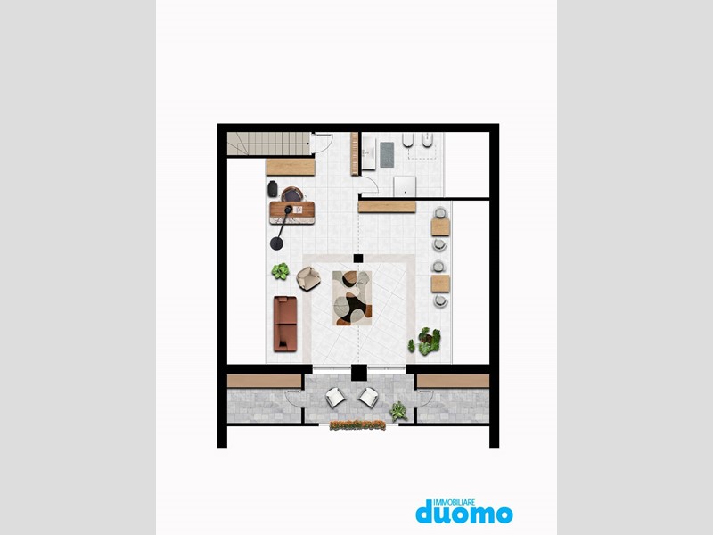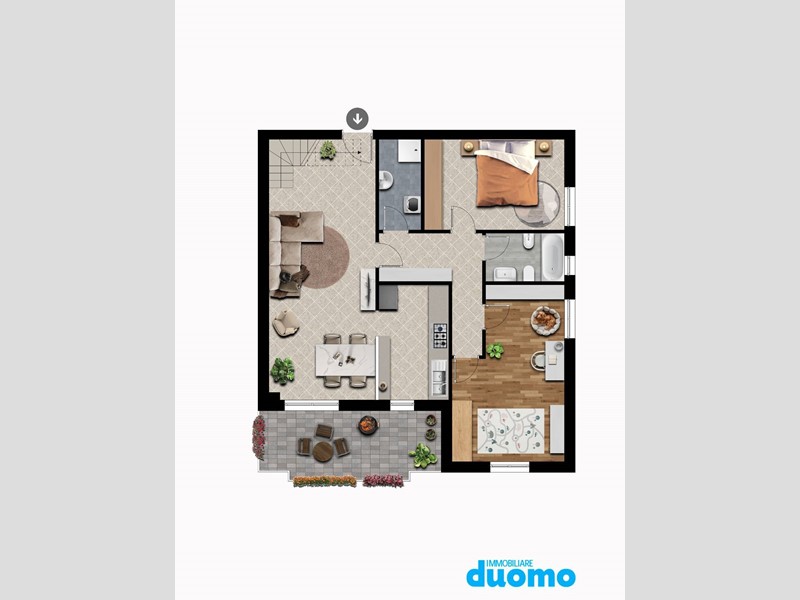 L'appartamento, in ottime condizioni e rifinito si presenta con i serramenti in legno, pavimenti della zona notte in parquet, climatizzato, termo autonomo e si sviluppa su due piani.