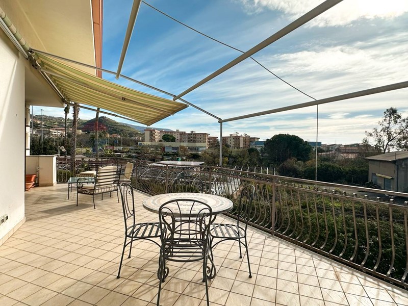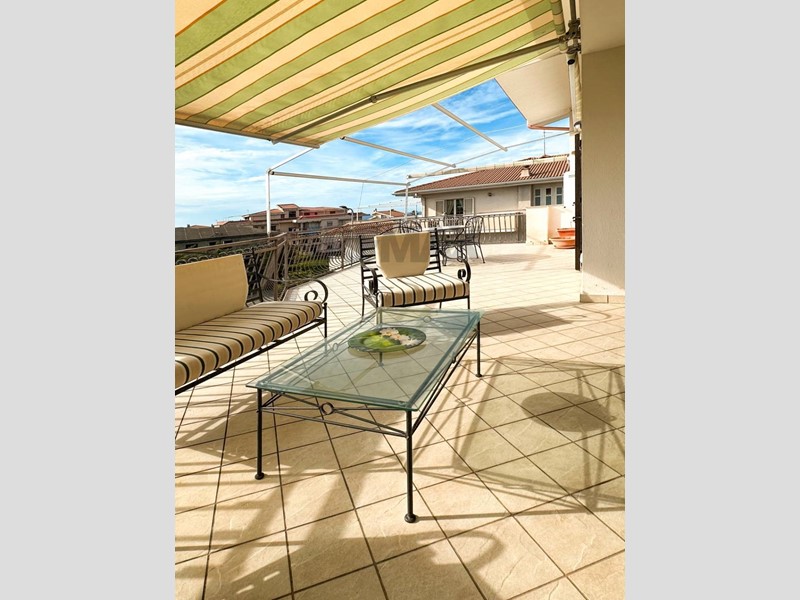 -ingresso su grande soggiorno con uscita su spettacolare terrazzo di 50 mq vista mare, esposizione Ovest,