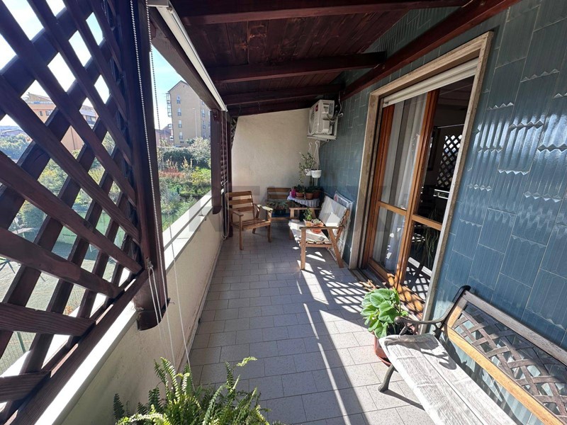 Nella zona residenziale di Città 2000, caratterizzata da assetto urbanistico ordinato e dalla presenza immediata di servizi pubblici e commerciali nonché dalle principali direttrici viarie, si colloca un appartamento posto al terzo piano di edificio civile, connotato da condizioni manutentive elevate e da una distribuzione interna armoniosa. La superficie abitativa pari a circa cento metri quadrati si integra con un balcone perimetrale di ulteriori venti metri quadrati, reso pienamente fruibile dalla presenza di una tettoia in legno lamellare, e con una soffitta pertinenziale di circa dodici metri quadrati, idonea a funzioni di deposito ordinato. Laccesso avviene mediante un ingresso ampio, che introduce a un salone luminoso, con affaccio aperto e privo di interferenze visive. La cucina abitabile risulta dotata di proporzioni equilibrate e consente lorganizzazione di un ambiente domestico funzionale e composto. La zona notte si articola in una camera matrimoniale di generosa metratura e in unulteriore stanza, adatta a funzioni diverse secondo le esigenze dellutenza. Il servizio igienico manifesta finiture curate e adeguata distribuzione degli spazi. Lesposizione sud-est imprime allabitazione una costante luminosità e un microclima gradevole, mentre la corte recintata offre possibilità di parcheggio in area privata, incrementando la fruibilità dellinsediamento. Linsieme restituisce un quadro abitativo armonico, contraddistinto da ordine distributivo, buona qualità costruttiva e collocazione territoriale vantaggiosa.