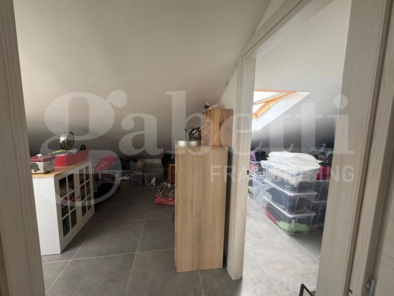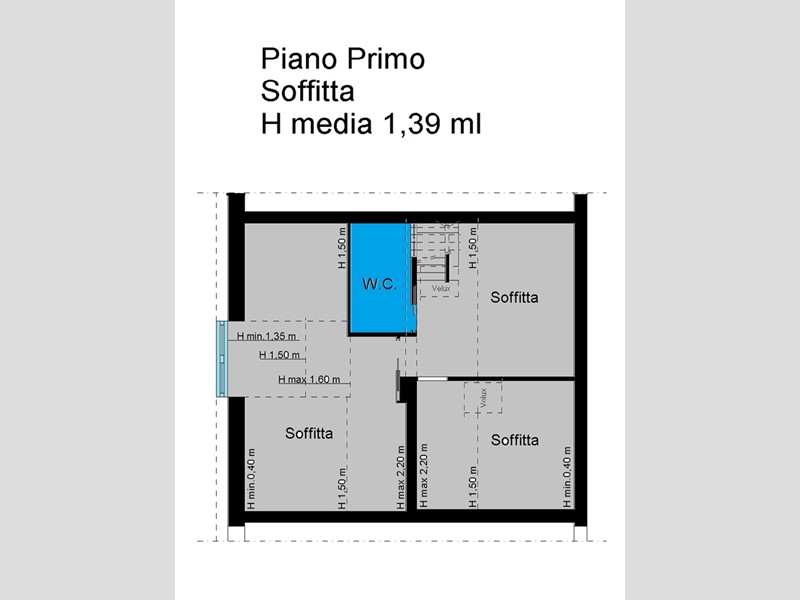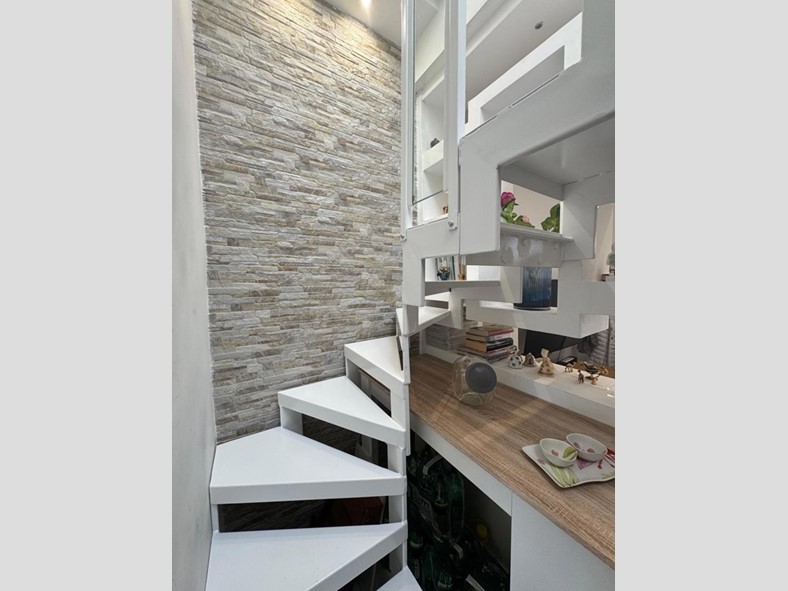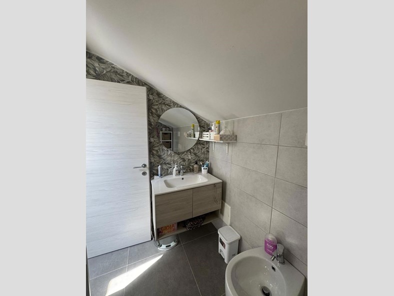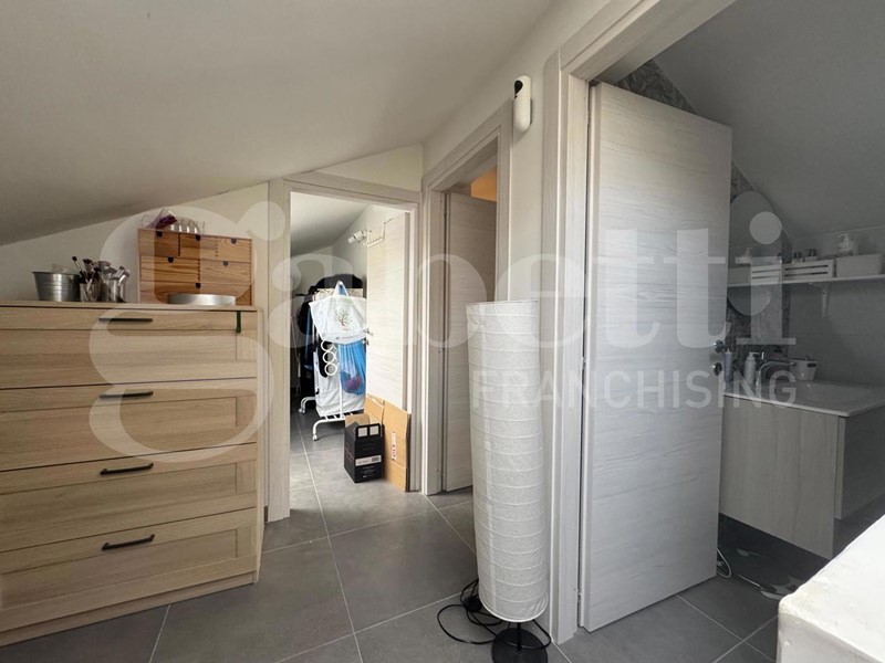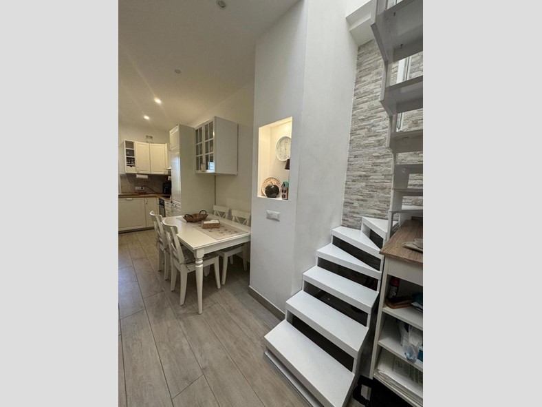 L'immobile si sviluppa su due livelli per una superficie complessiva di circa 83 mq. Al piano terra veniamo accolti da un luminoso soggiorno con cucina a vista, seguito da un pratico disimpegno che conduce alla camera matrimoniale e al bagno, privo di finestra. Salendo al primo piano troviamo una soffitta suddivisa in tre ambienti, con un'altezza massima di 2,20 m che arriva fino a 0,40 cm, oltre a un secondo bagno, offrendo così spazi versatili da adattare a diverse esigenze.