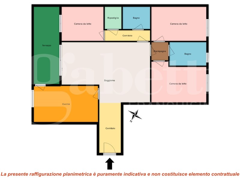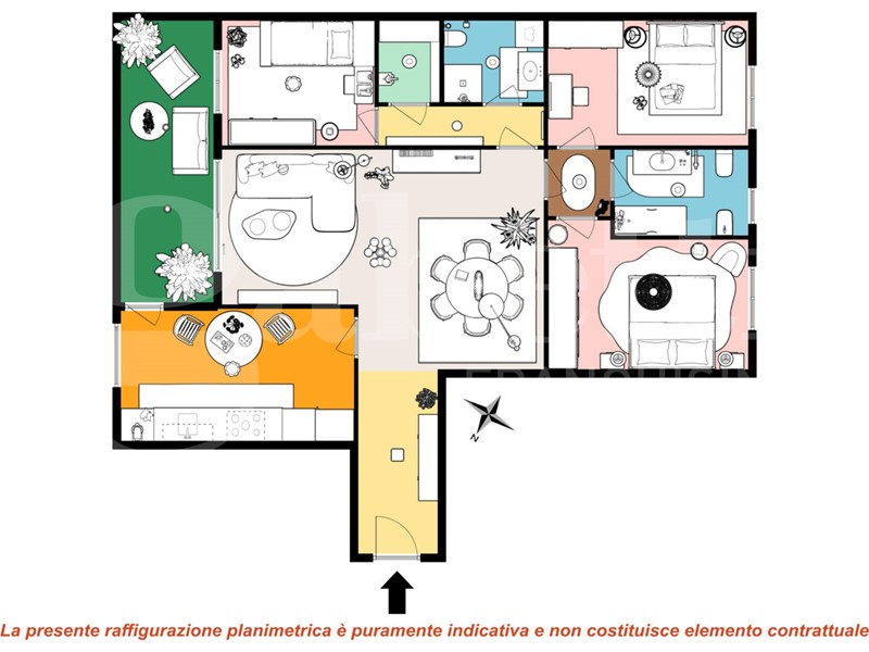 In contesto residenziale tranquillo e ben curato con giardino condominiale e servizio di portineria, proponiamo in vendita luminoso QUADRILOCALE con DOPPI SERVIZI e TERRAZZO loggiato, situato al terzo piano con ascensore.