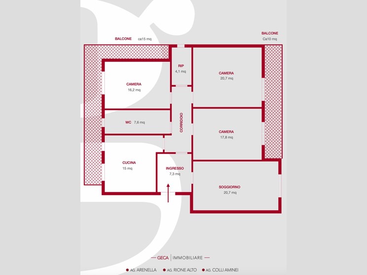 L'immobile gode di una doppia esposizione estremamente luminosa, con affacci aperti su Viale Colli Aminei e su Via Nicolardi, e si sviluppa su una pianta regolare, facilmente modulabile, con una superficie catastale complessiva di 142 mq. Gli ambienti interni sono ampi e ben distribuiti: l'ingresso conduce a un grande soggiorno, la zona notte è composta da tre spaziose camere da letto; completa la casa una cucina abitabile di generose dimensioni e un bagno, con la concreta possibilità di realizzarne un secondo.
