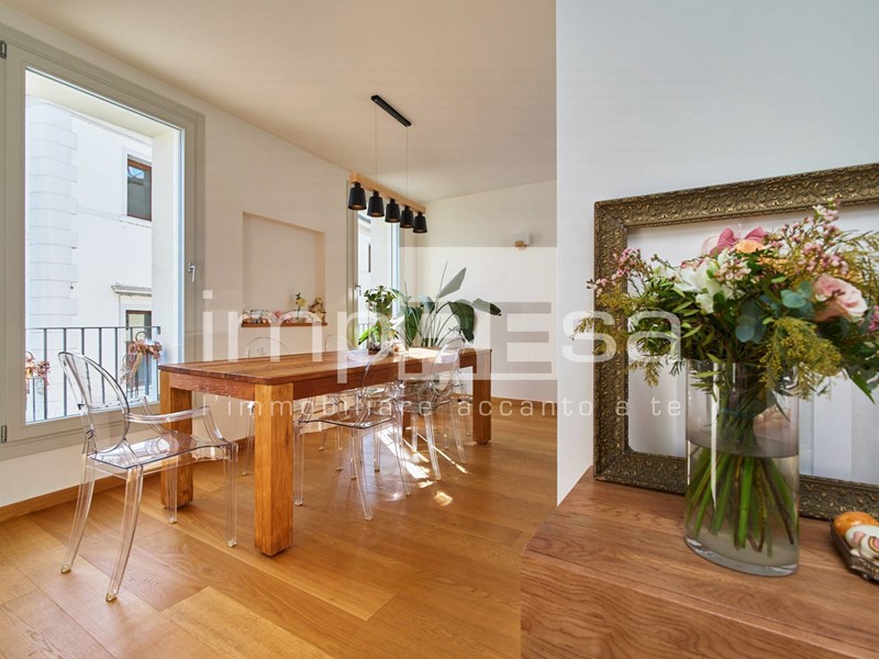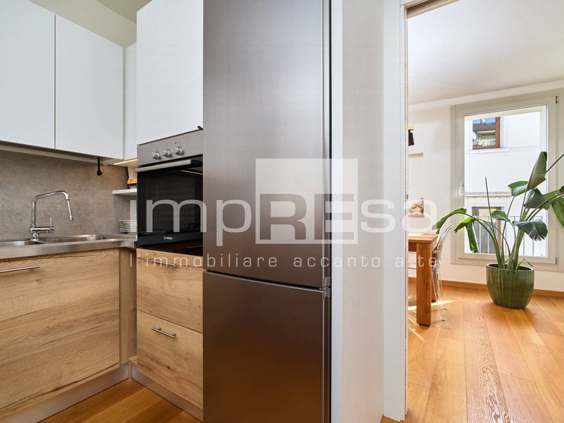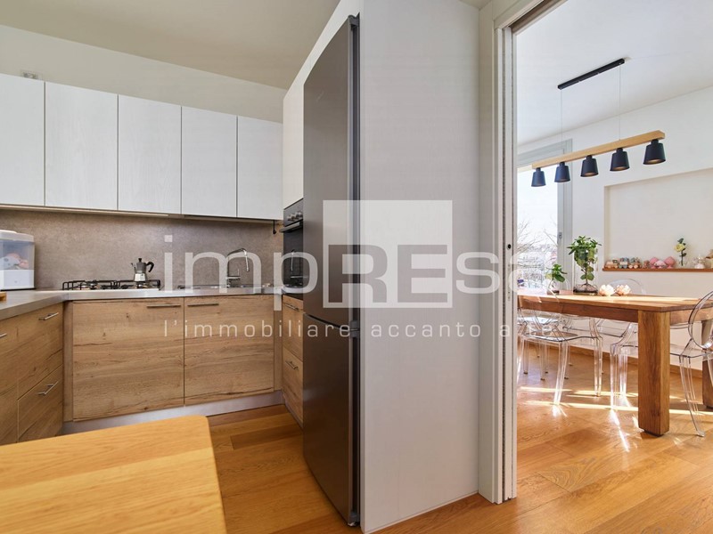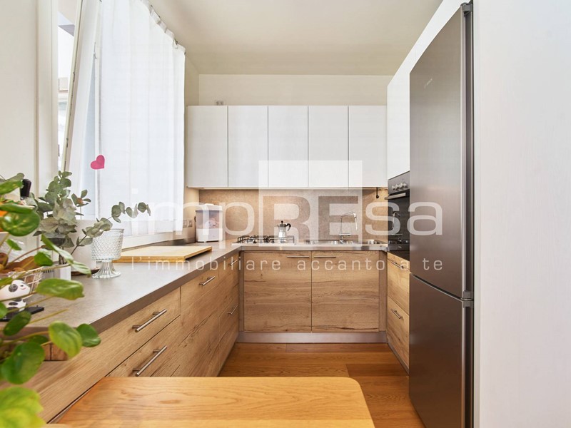 L'ingresso si apre su un ampio e luminoso che si affaccia su un comodo balcone ideale per godersi momenti di relax. La cucina, arredata con gusto e dotata di tutti i comfort, è abitabile e permette di organizzare pranzi e cene in compagnia.