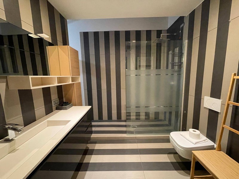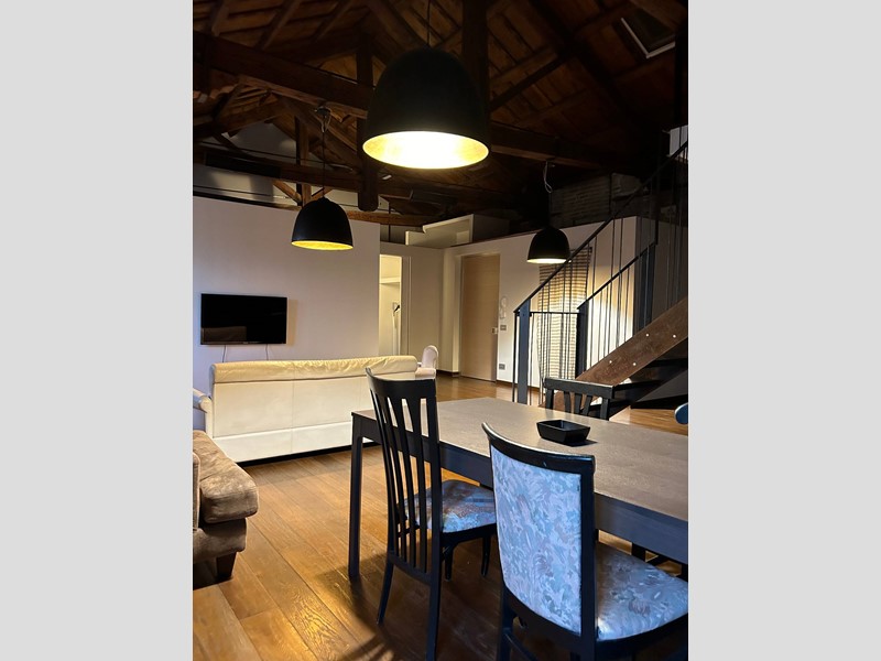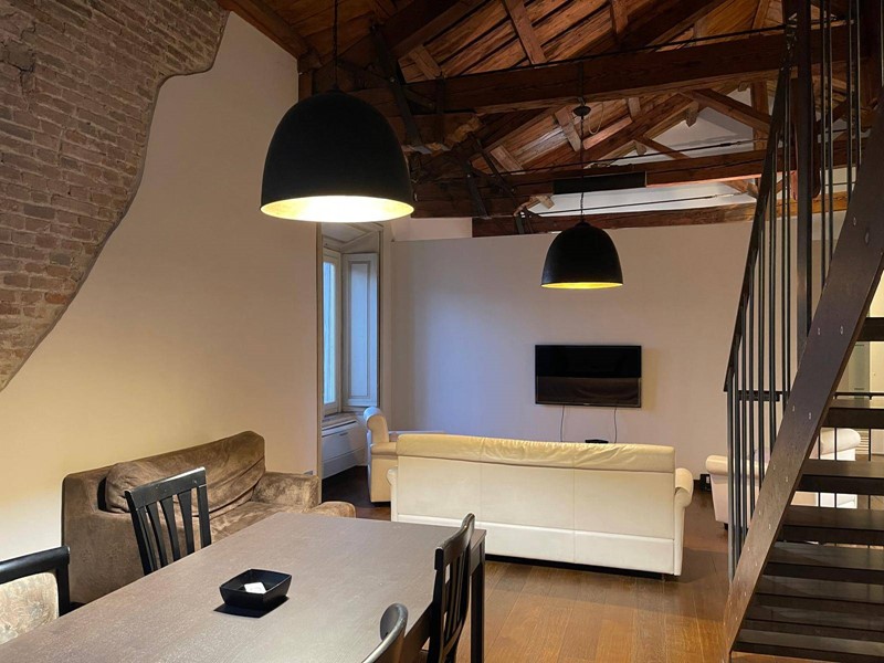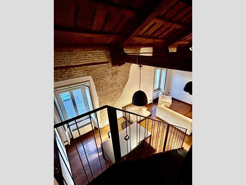 L'unità, situata al terzo ed ultimo piano preziosità da decori ornamentali sapientemente recuperati dell'epoca, si affaccia direttamente sulla zona living dove, pur condividendo una superficie openspace, risultano ben definite larea cucina, con sovrastante soppalco, la zona pranzo ed il soggiorno. Il soppalco che ospita la seconda letto, interamente realizzato in ferro e legno di rovere senza nodi, è accessibile da una scala dal gusto lineare e pulito che, tuttavia, si integra perfettamente con lo stile del Palazzo.