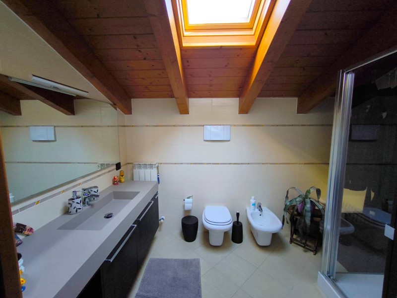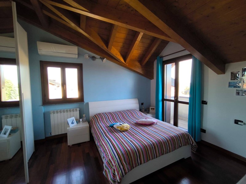 Una scala interna in legno conduce alla zona notte, caratterizzata da unatmosfera calda e accogliente grazie alle travi a vista, dove troviamo due camere entrambe con balconcino ed un bagno ampio e moderno.
