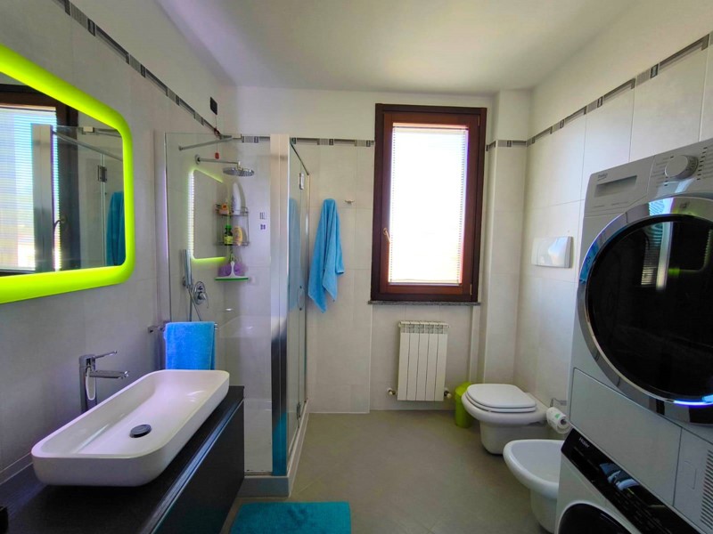 Limmobile si distingue per la cura dei dettagli: arredi su misura, porte scorrevoli a scomparsa, zanzariere su tutti i serramenti, parquet nelle camere, sanitari sospesi, serramenti in legno con doppio vetro, riscaldamento autonomo con caldaia esterna.
