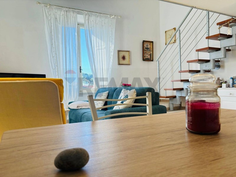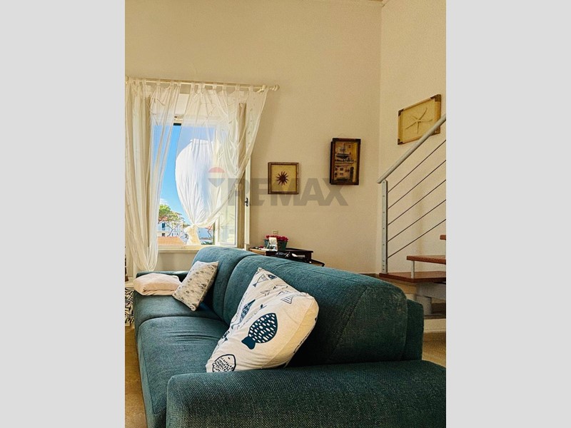 Entrando nellappartamento si viene accolti da un luminoso open space con una finestra che si affaccia sulla piazza e sul mare, regalando una vista che cambia colore durante tutta la giornata.