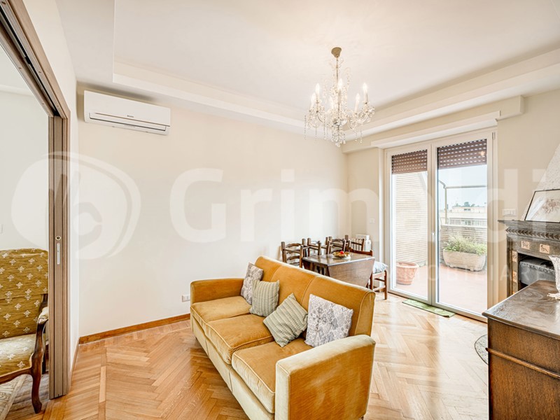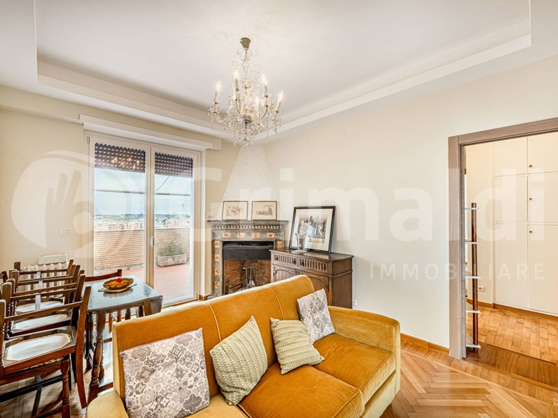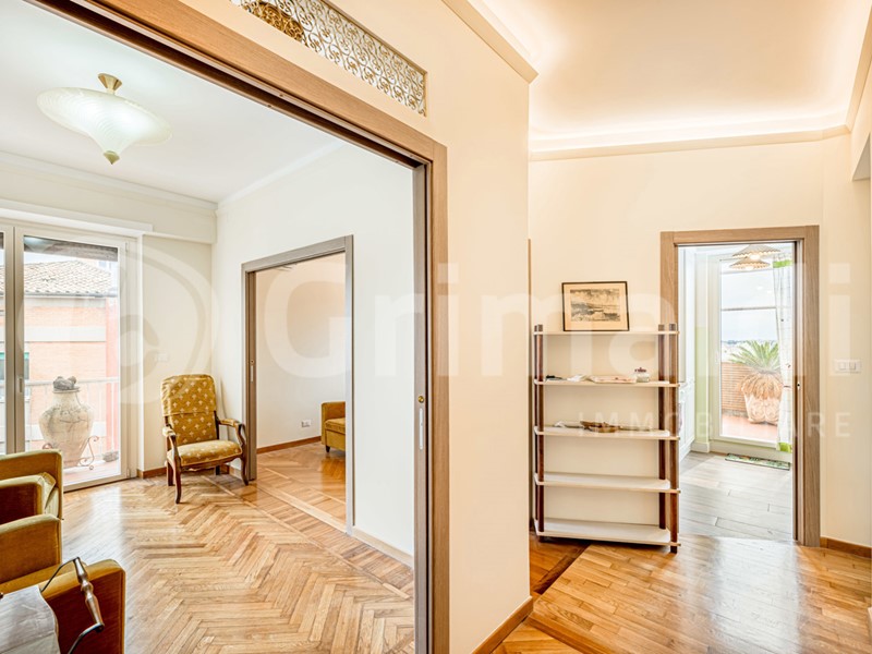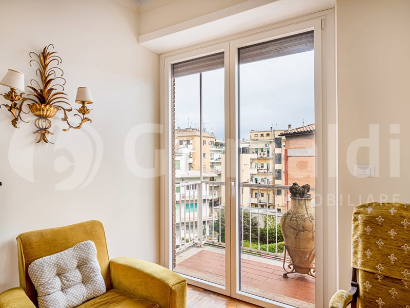 ?Al sesto piano di un signorile stabile situato in questa via riservata, l'agenzia immobiliare girmaldi roma prati ha il piacere di raccontarvi la vendita di un appartamento di 99 mq commerciali, i cui tratti distintivi sono l'estrema luminosità e la veduta. L'immobile gode di una doppia esposizione angolare aperta che, in sinergia con l'altezza del piano, garantisce un'eccellente irradiazione solare in tutti gli ambienti e un costante riscontro d'aria. La zona giorno è impreziosita da pertinenze esterne cioè un balcone e una terrazza abitabile di circa 20 mq. Quest'ultima, superando la linea dei tetti circostanti, offre un affaccio panoramico profondo e privo di ostacoli visivi sullo skyline della città.