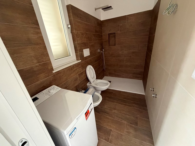 ? Bagno moderno, completo di box doccia e finiture di qualità;